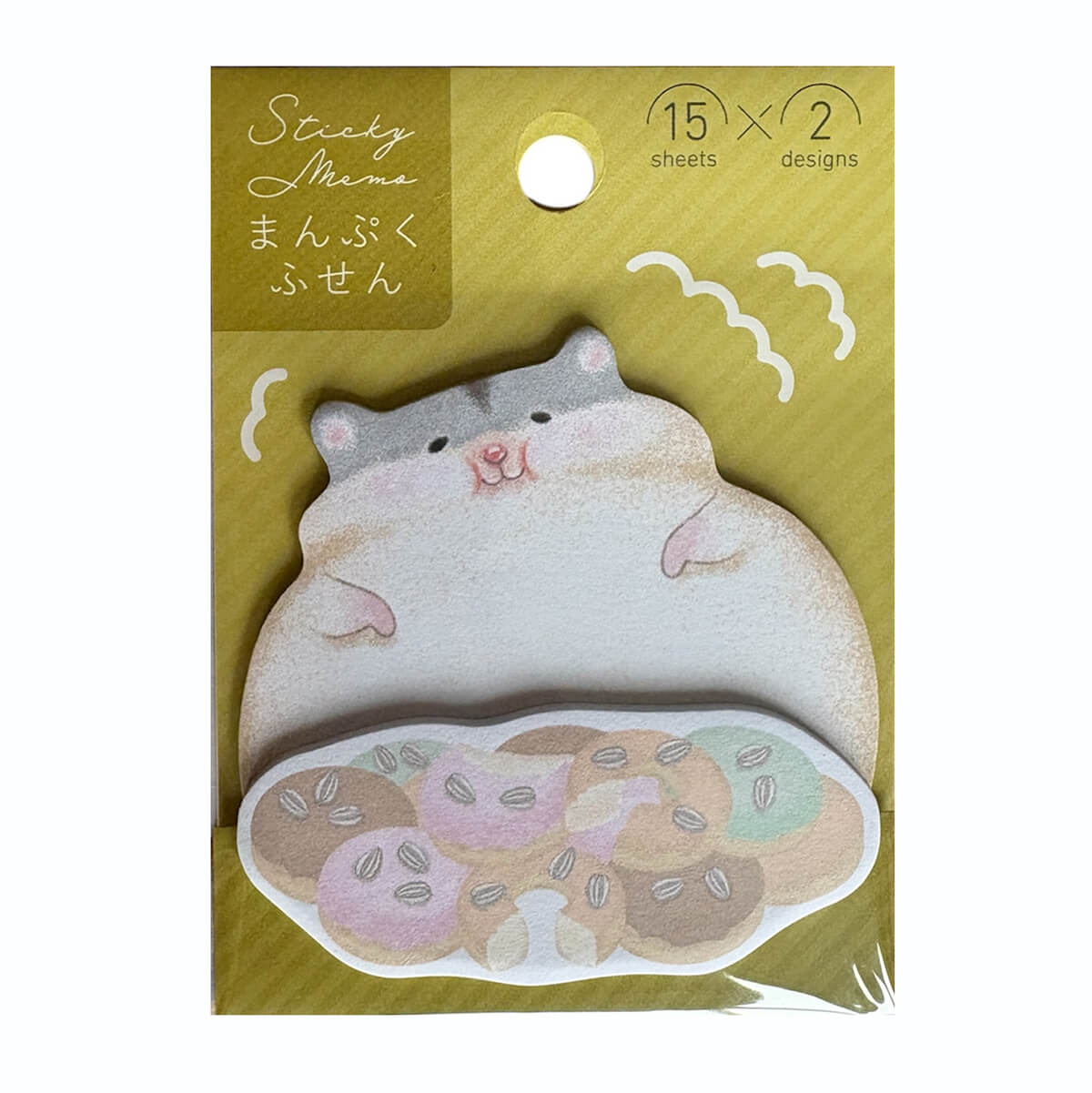 Greedy Hamster Sticky Notes by Gakken Japan. Adorable sticky notes featuring a round belly hamster and smaller cookie notes.