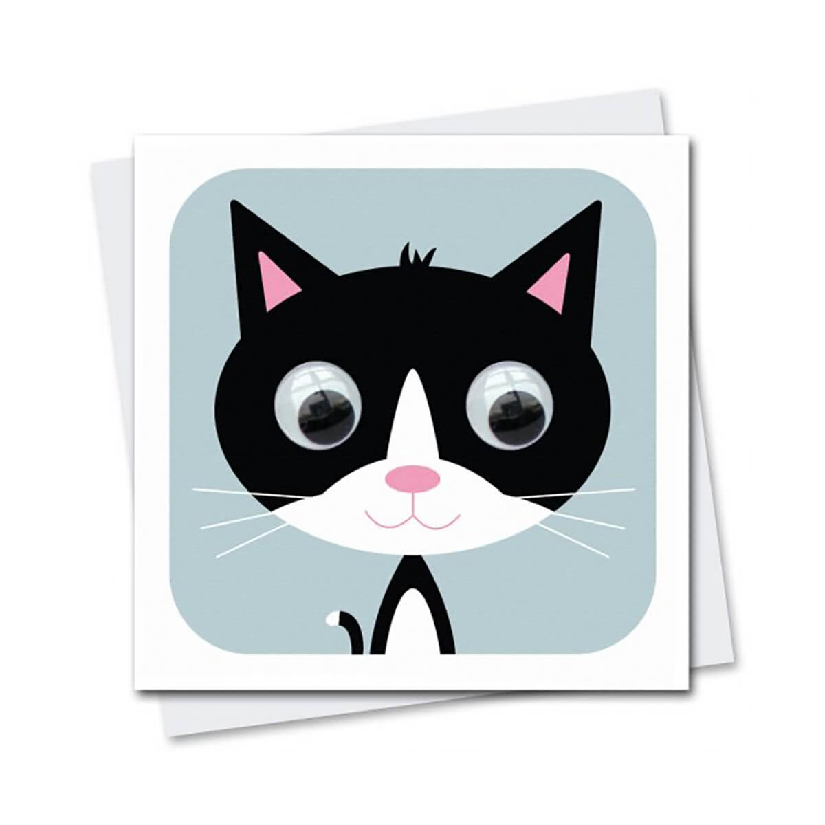 Karl Kitten greetings card by Stripey Cats Cards. Wobbly eyed greetings card featuring an illustration by Jonathan Crosby. Blank inside for your own message.
