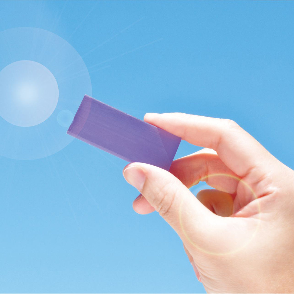 Sun Radar Colour Changing Eraser by Seed Co. Ltd. Japan. The Sun Radar is a semi-transparent eraser that changes colour when exposed to sunlight. You can enjoy two different colours between sunny and shaded areas.