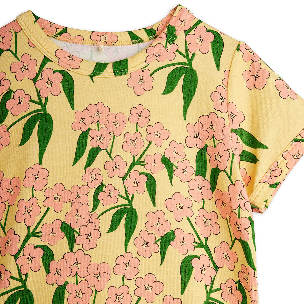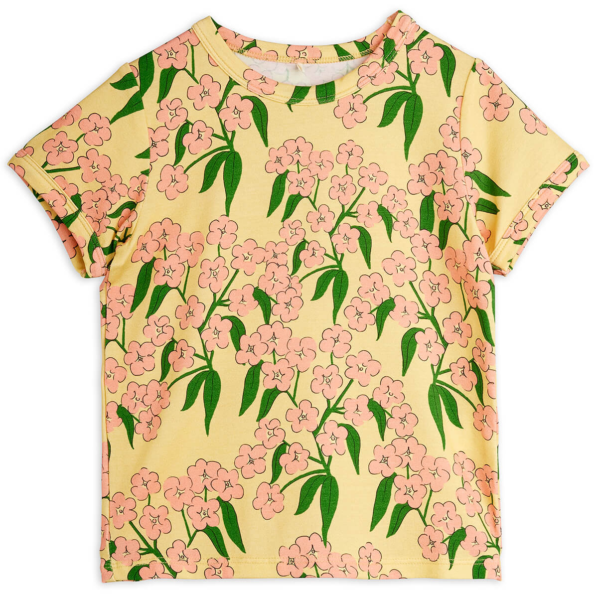 Alpine Flowers Tee by Mini Rodini. Yellow t-shirt with alpine flowers design in a slightly slimmer fit.