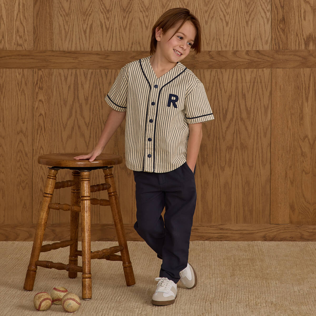Baseball Shirt in Navy Pinstripe by Rylee & Cru