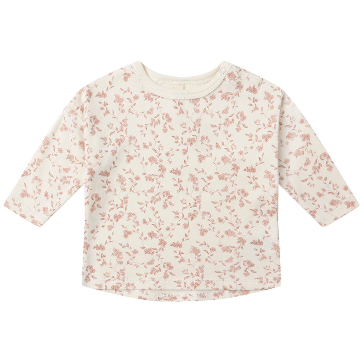 Long Sleeve Tee by Quincy Mae. Long sleeve baby t-shirt crafted from soft organic brushed cotton for all-day comfort. Featuring a shoulder snap on sizes 0-3M - 18-24M for easy wear.