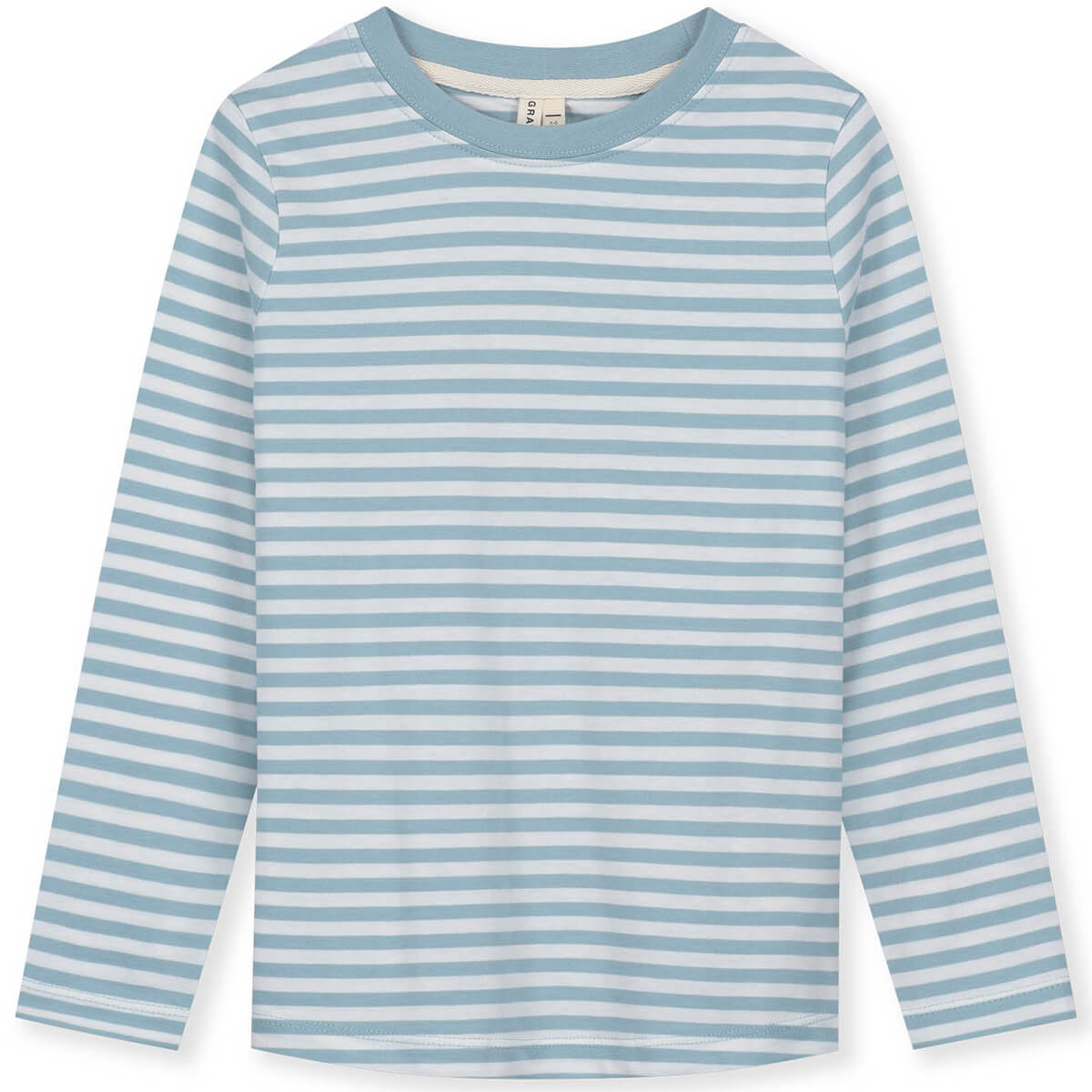 Long sleeve tee by Gray Label. This long-sleeved striped T-shirt is made from soft organic cotton jersey. A slip-on style, it has a ribbed round neck, neat topstitching and rounded hem. Gray Label logo is stitched on the side of the right arm, just below the shoulder.