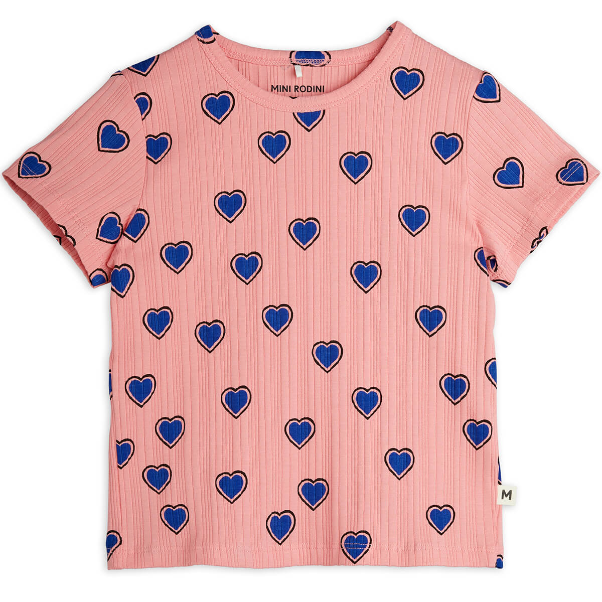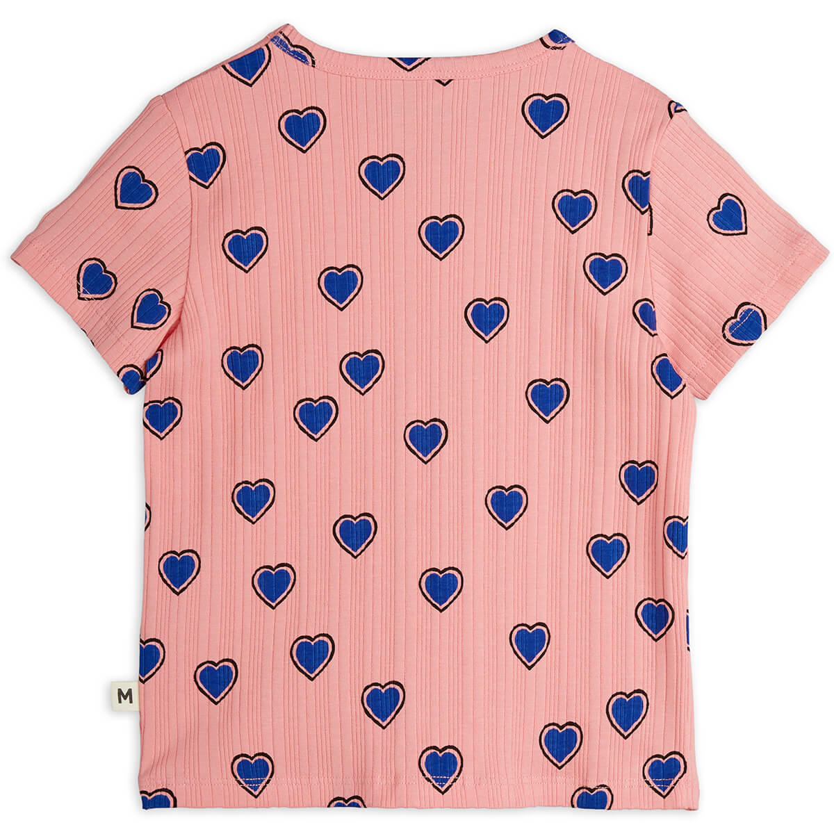Outlined Hearts t shirt by Mini Rodini. Short sleeved rib tee with an all over heart print.