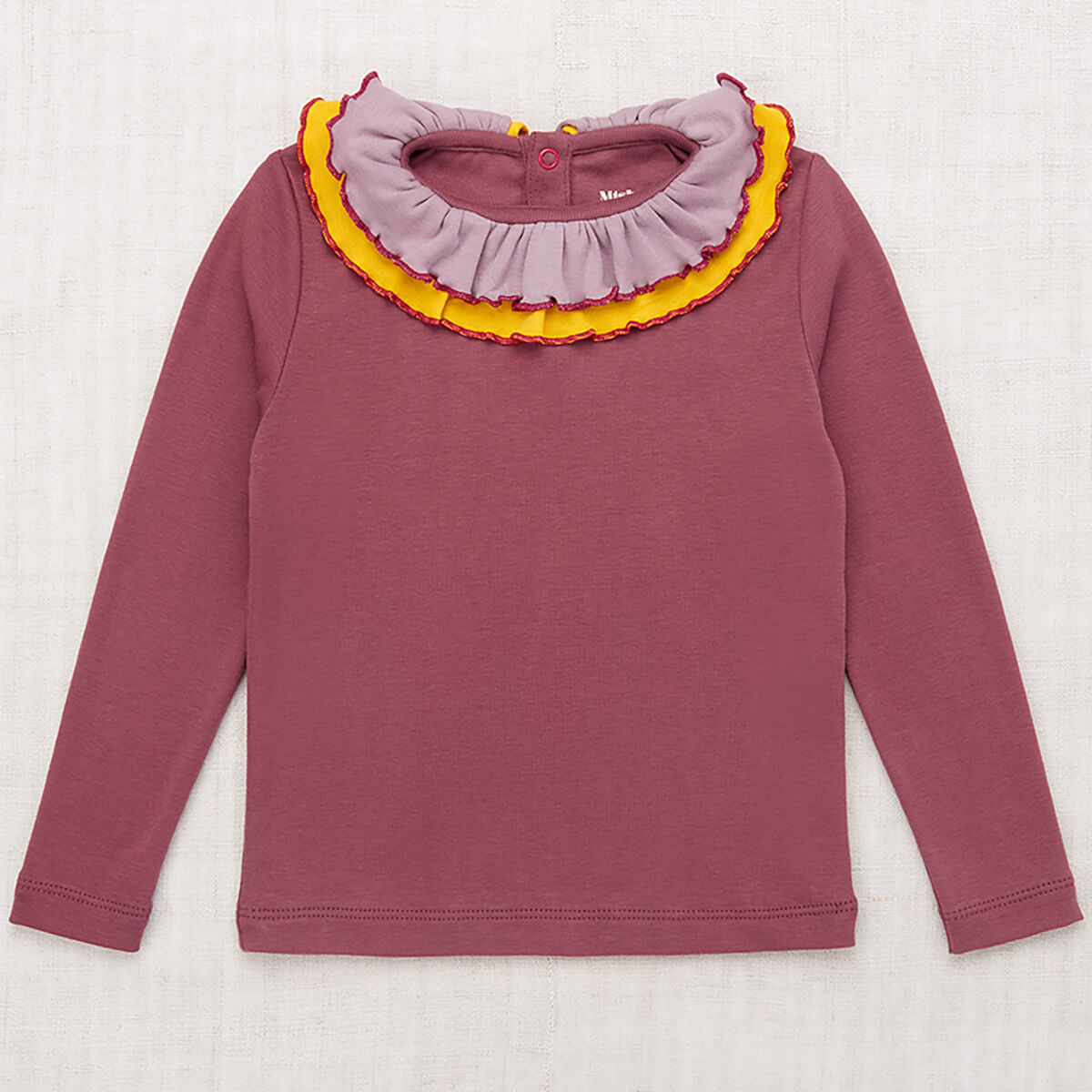 Sweetheart Top by Misha & Puff. Luxuriously soft Pima cotton top with a two rows of gathered neck ruffles. Easy to dress up or for everyday play.