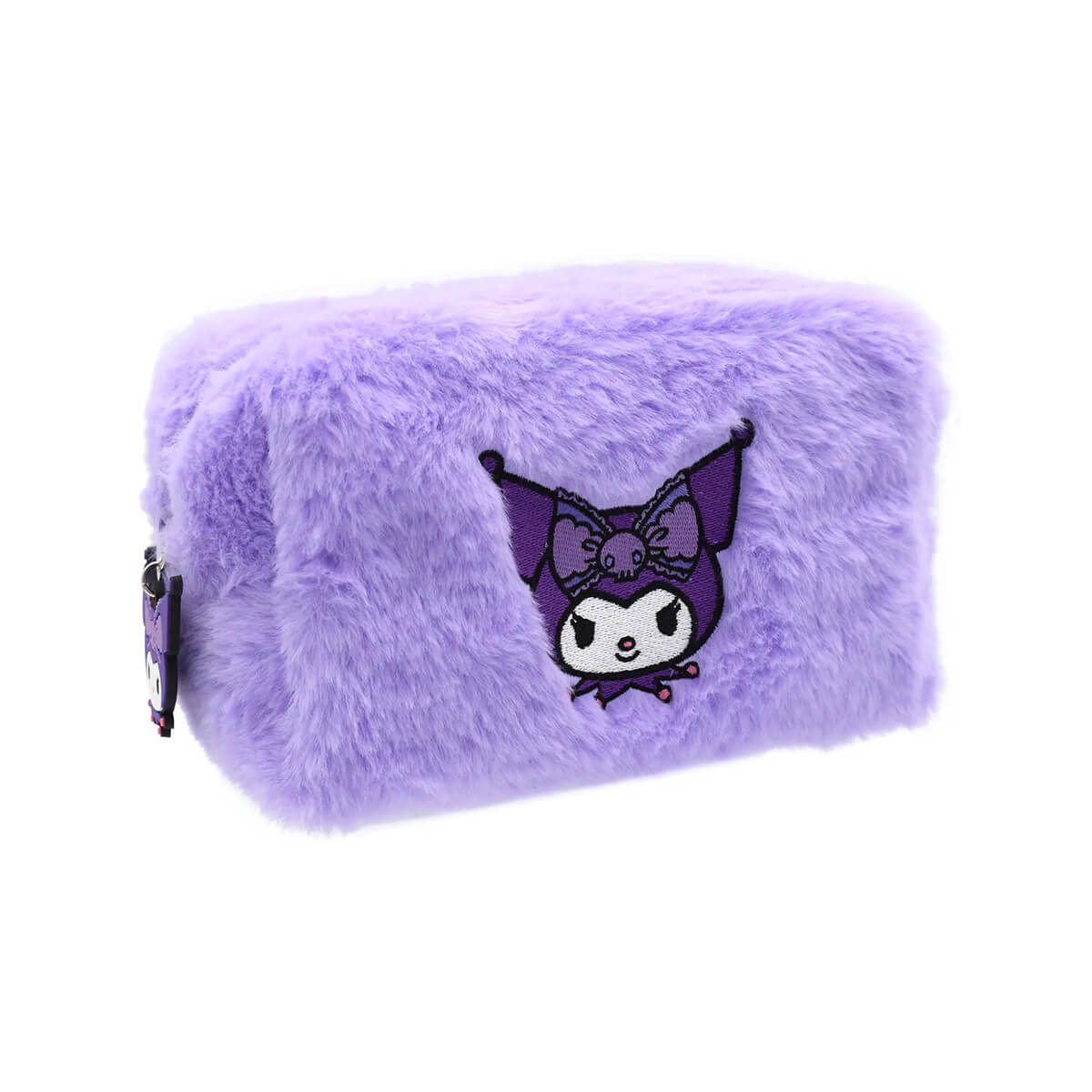 Kuromi plush toiletry bag by Take Care. This Kuromi plush cosmetics pouch is the essential accessory for carrying your beauty products in style and comfort. Inspired by the adorable Sanrio character, this make-up / toiletries bag combines practicality and softness to make your trips even more pleasant and fun. Features an embroidered Kuromi and a zip fastening with Kuromi charm.