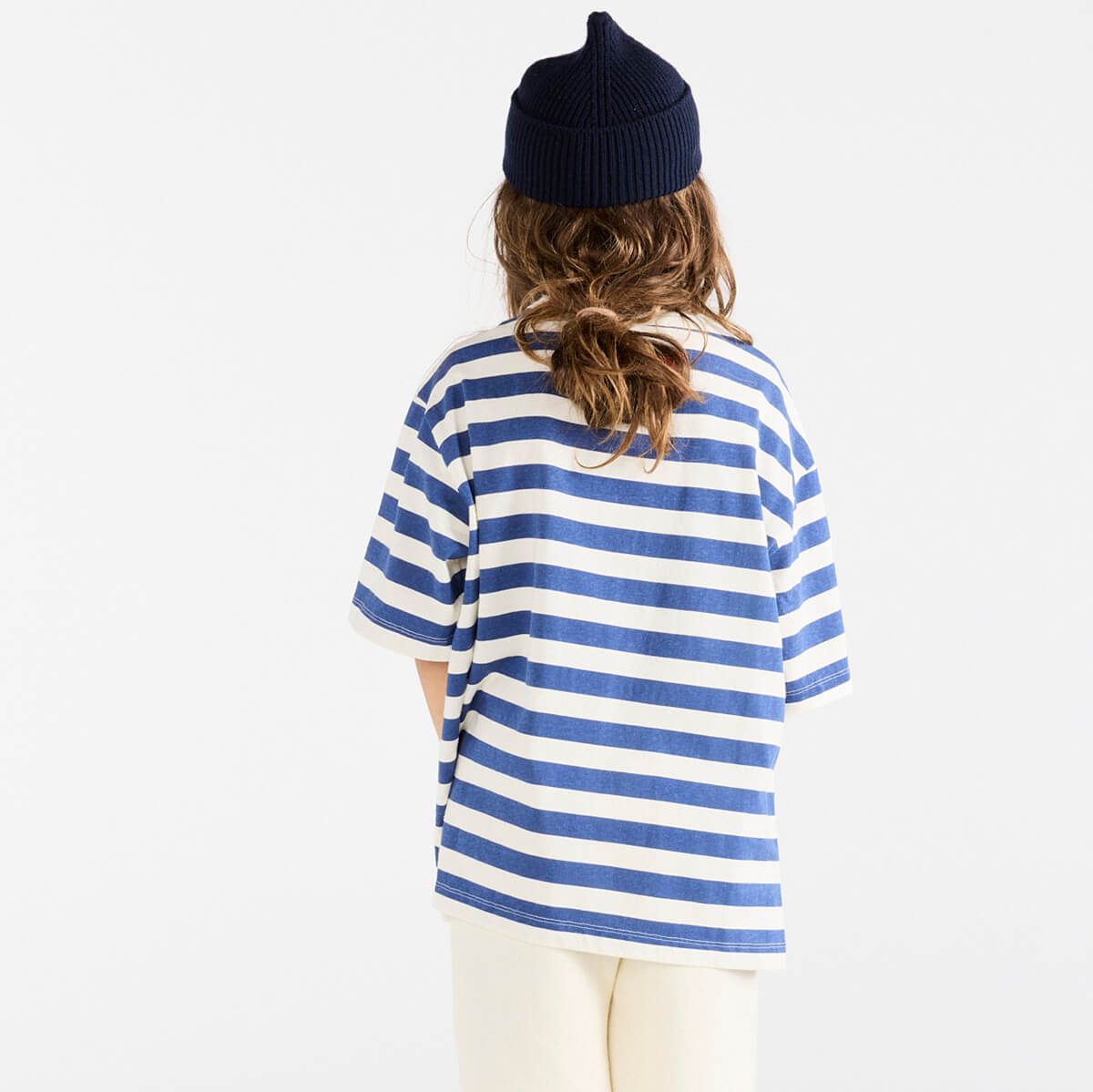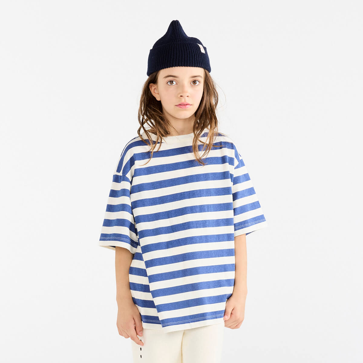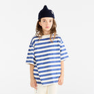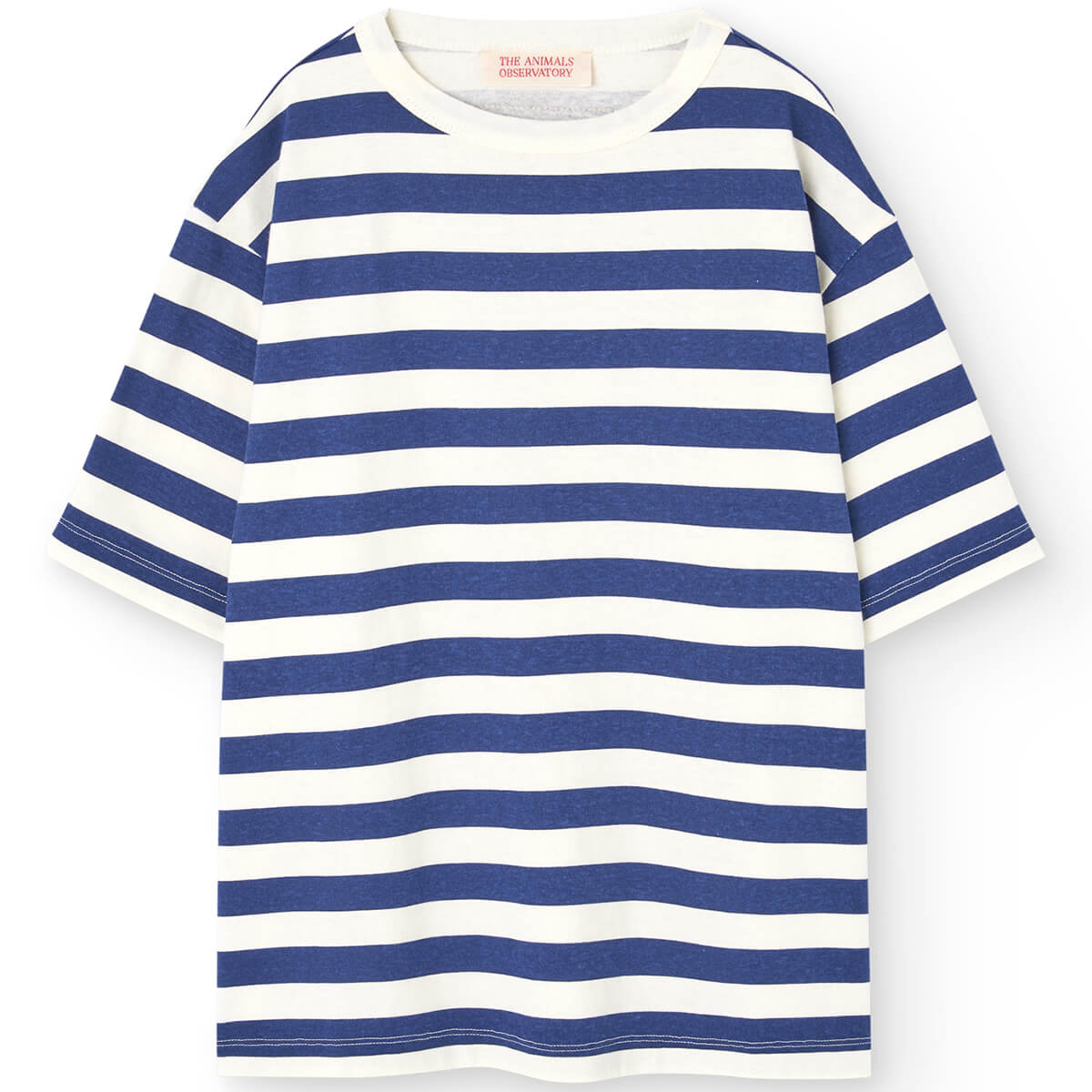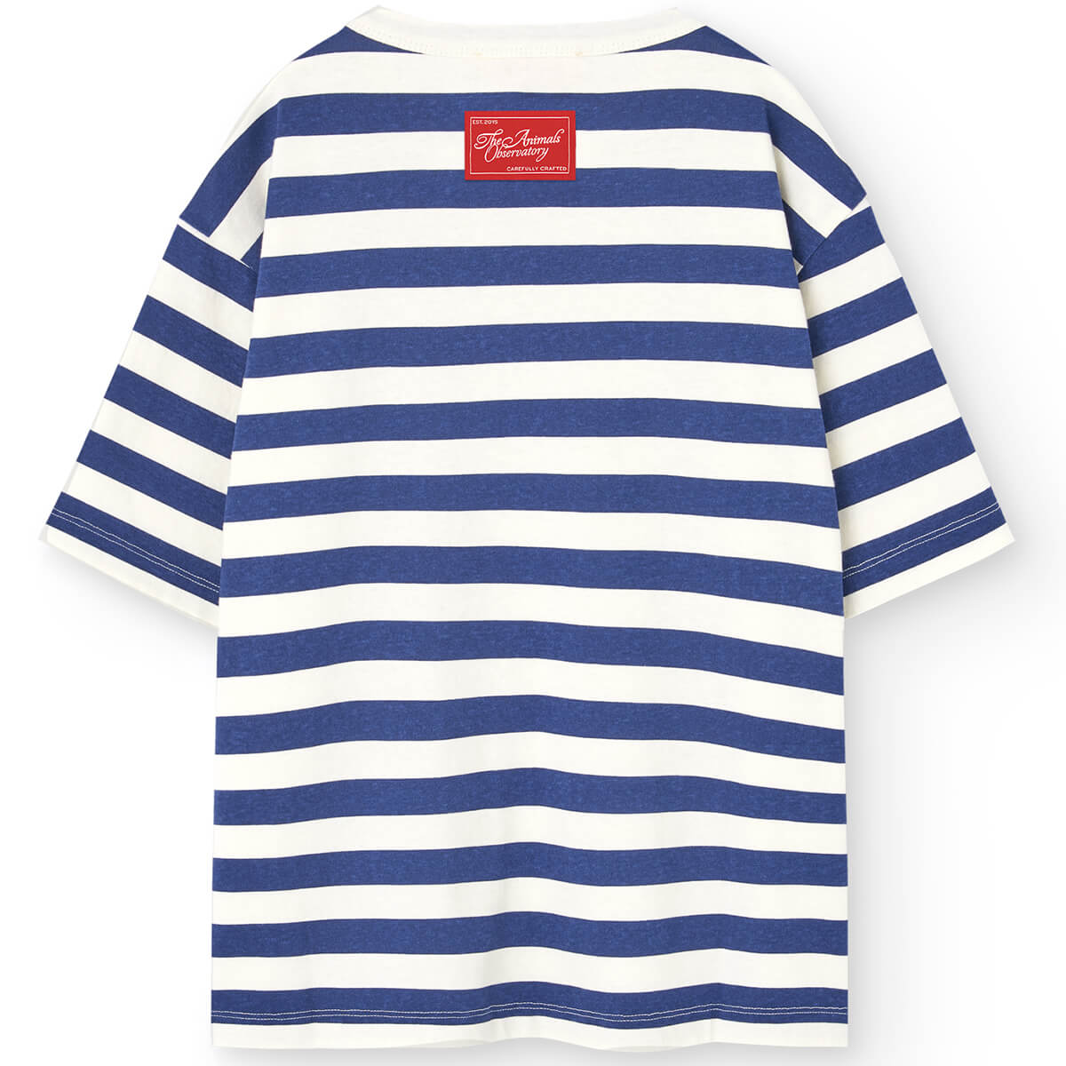 Collie Kid T Shirt by The Animals Observatory. This nautical-inspired tee combines timeless navy stripes with a bold red logo patch at the back.