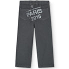 Condor Kid Pant by The Animals Observatory. Dark grey denim trousers with contrast stitching and bold text print.