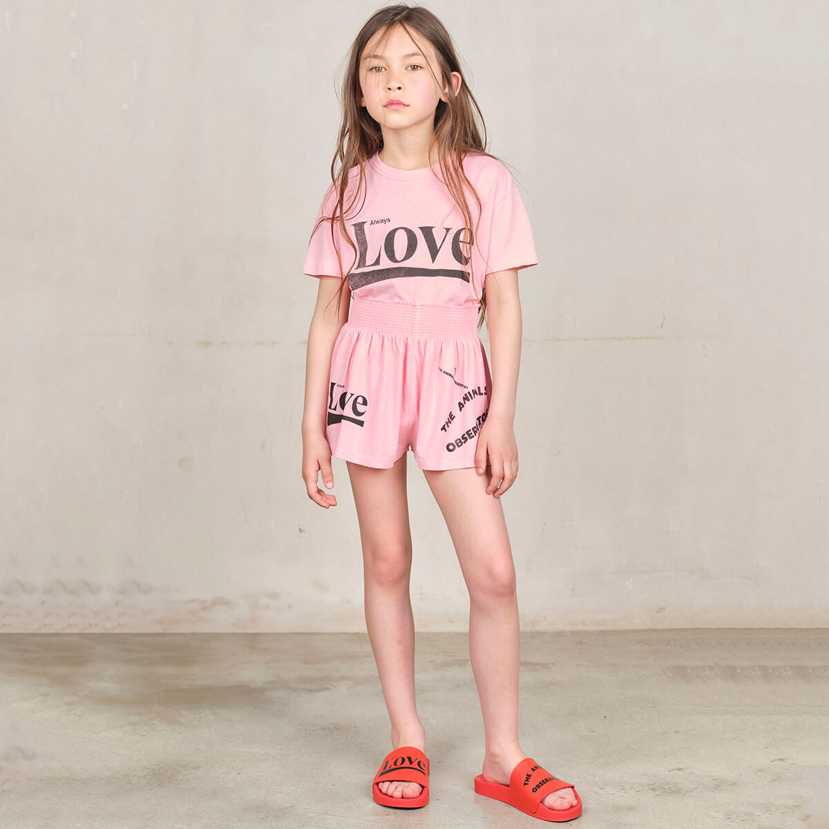 Ostrich Kids Shorts by The Animals Observatory. Shorts featuring the word “love.” Soft and cheerful, perfect for summer playdates.