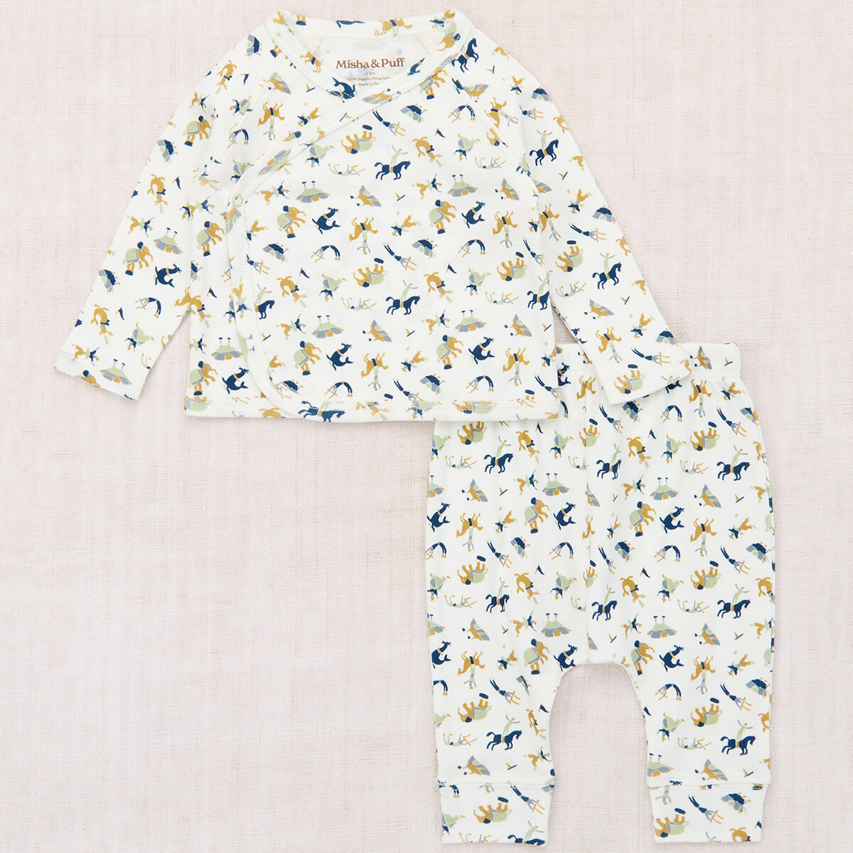 Baby Wrap Set by Misha & Puff. A baby set in soft organic Pima cotton, featuring a long-sleeved wrap top with a front snap closure and easy pull-on bottoms.