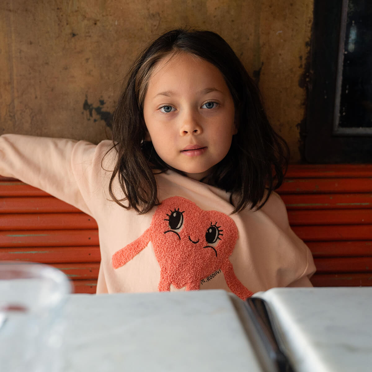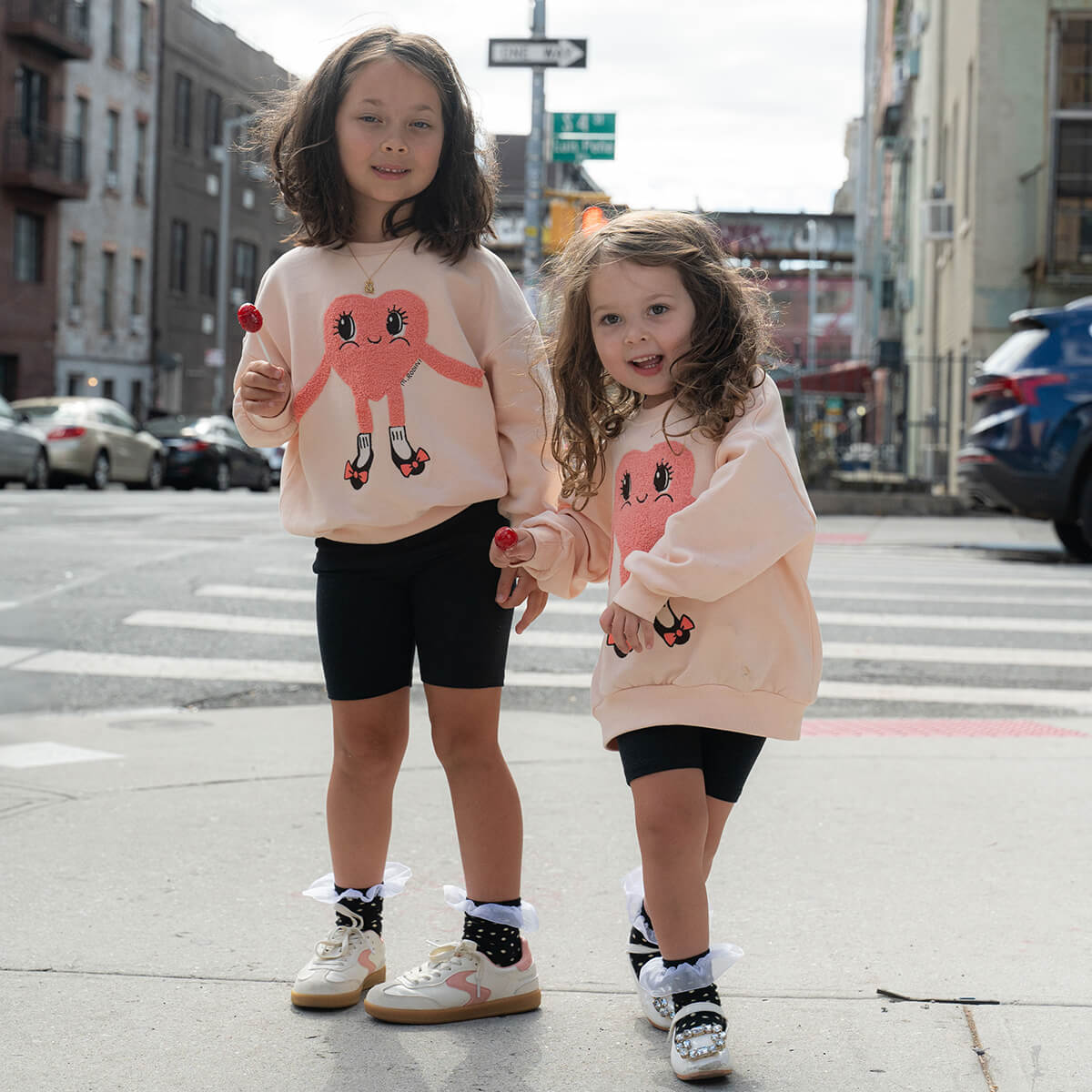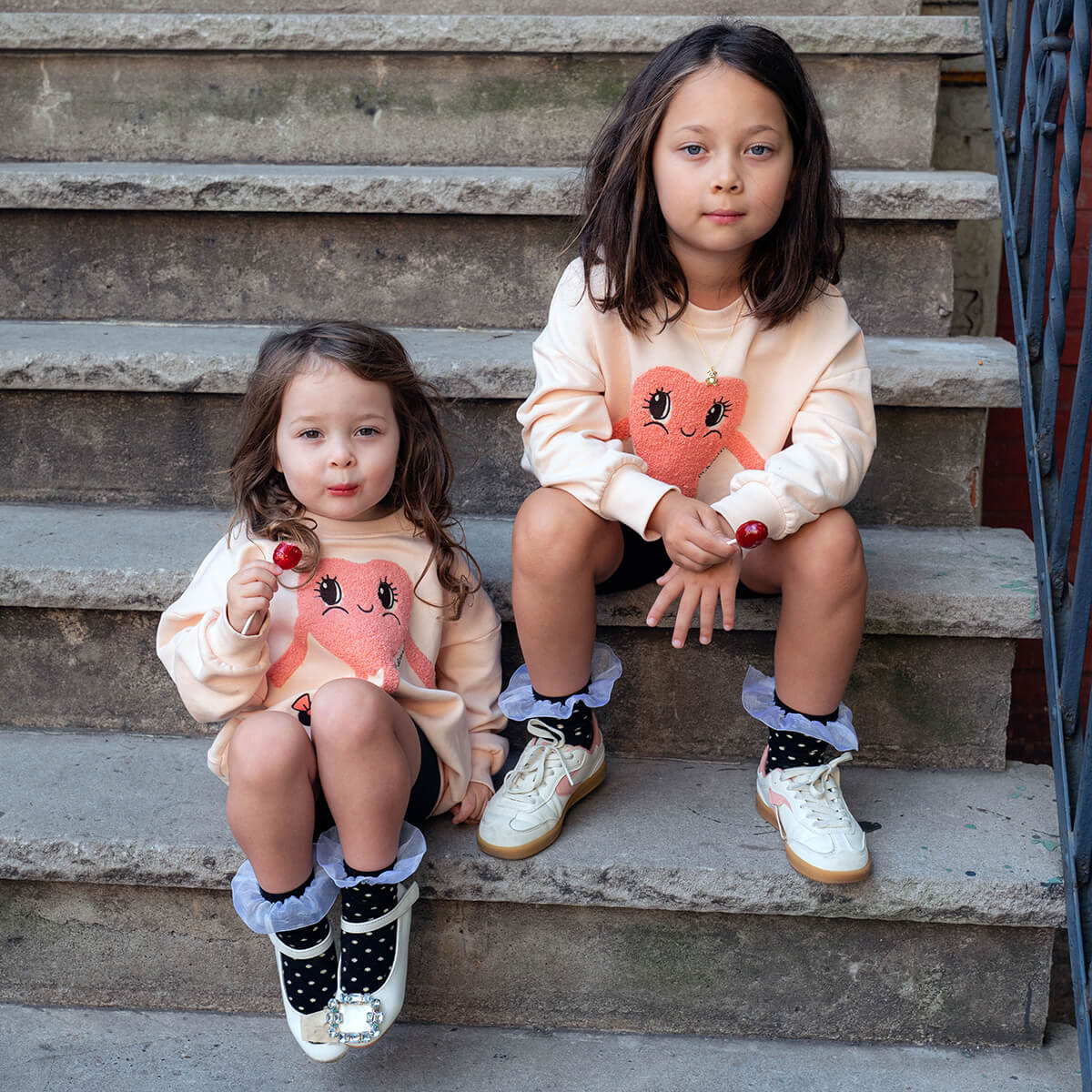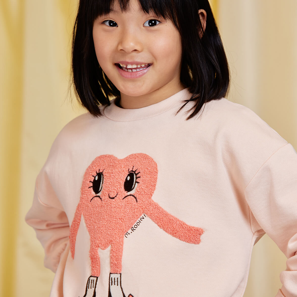 Heart In Shoes Chenille Sweatshirt by Mini Rodini. Sweatshirt made from 100% organic cotton. Designed with a relaxed fit and large chenille patch on the front.