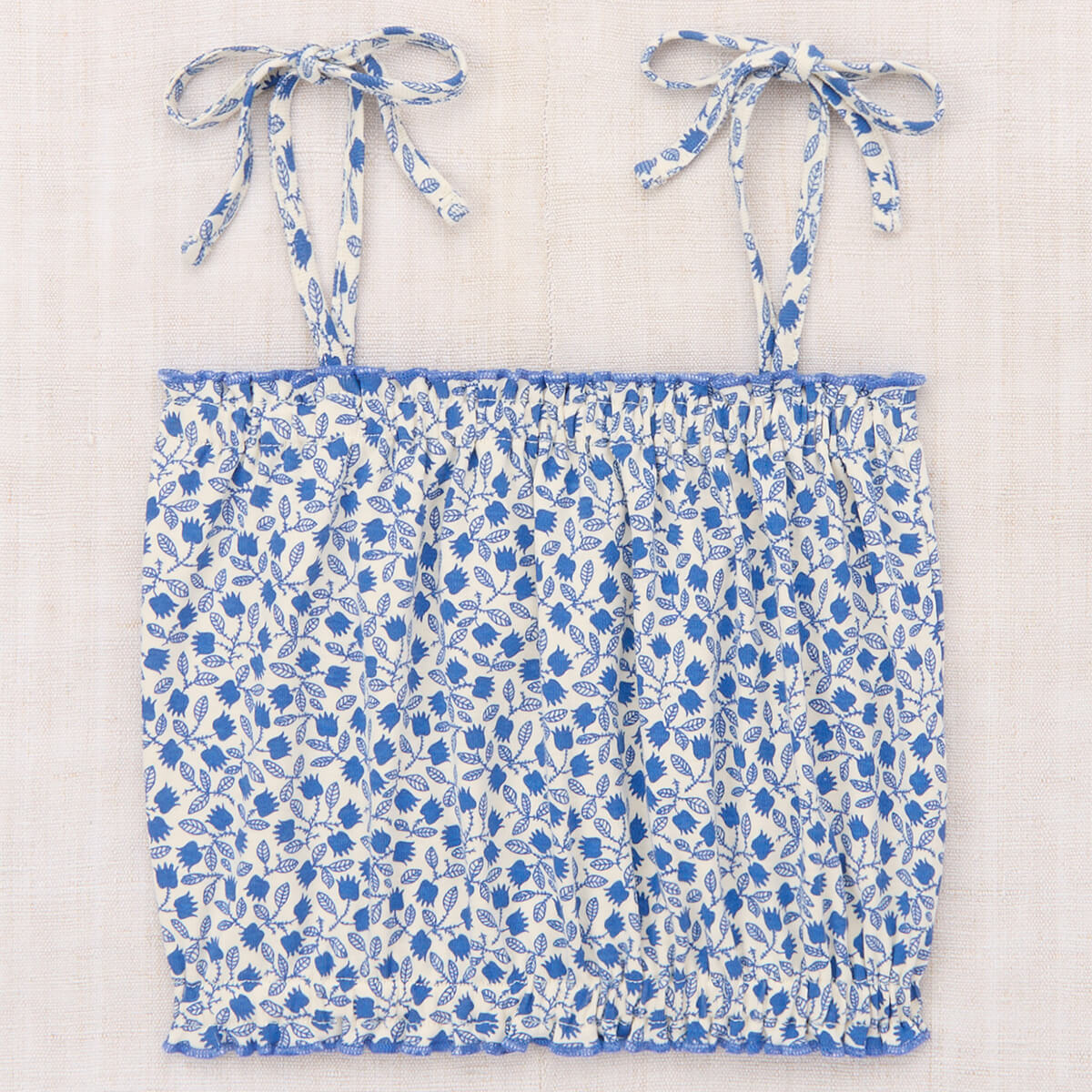 Sydney Top by Misha & Puff. A sweet tank top in organic Pima cotton, with ruffle trim finished with a merrowed edge and adjustable tie straps.