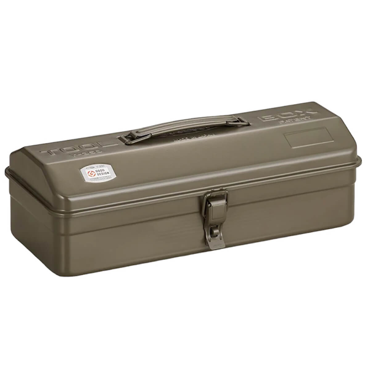 Camber top tool box by Toyo Steel. Made in Osaka since 1969, these award winning Japanese boxes are the premium standard for metal tool boxes. Pressed from a single steel sheet using metal moulds, each box is seamless and hardwearing. The elegent camber round top allows for extra storage compare to flat top boxes, with clip fasten closure and smooth round handle. Originally crafted for industry professionals, this lightweight storage box is perfect for storing anything from stationery to sandwiches.