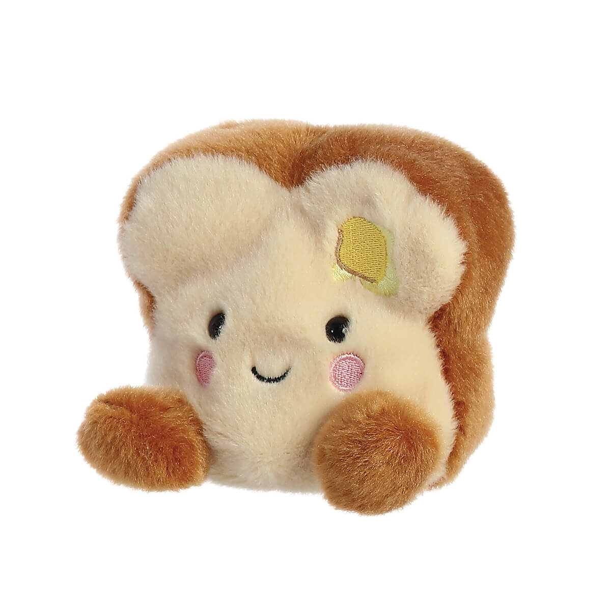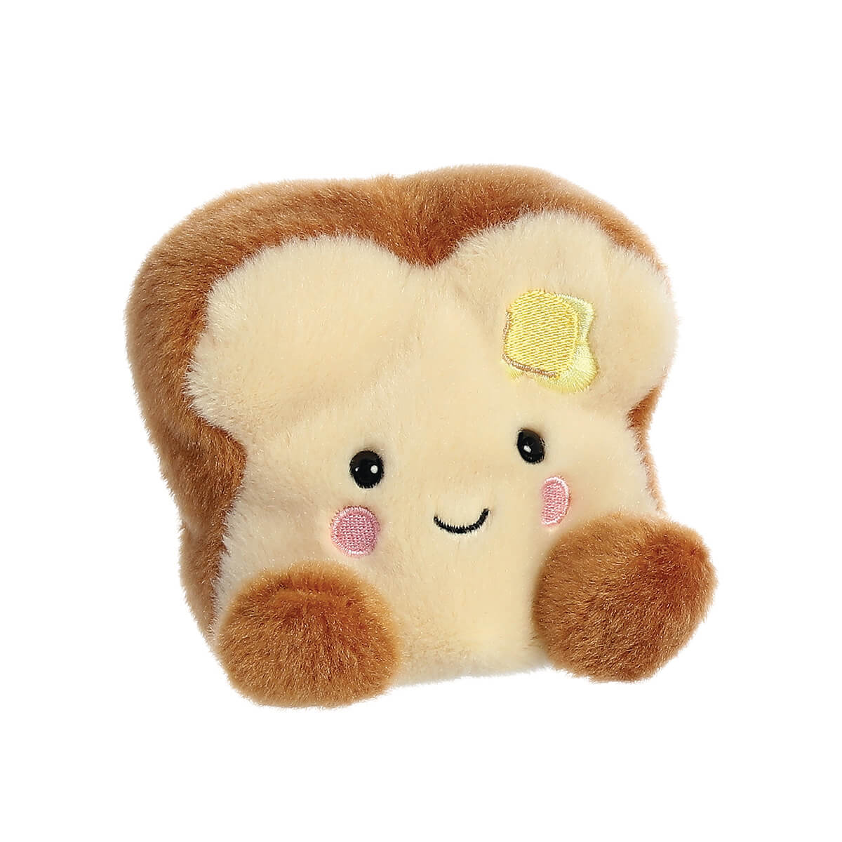 Buttery Toast Palm Pal by Aurora. This cute toasty friend fits into the palm of your hand and is full of beans which makes it super soft and cuddly. Buttery Toast's body is a soft brown plush material. Palm Pals make great gifts for any occasion. Suitable from birth.