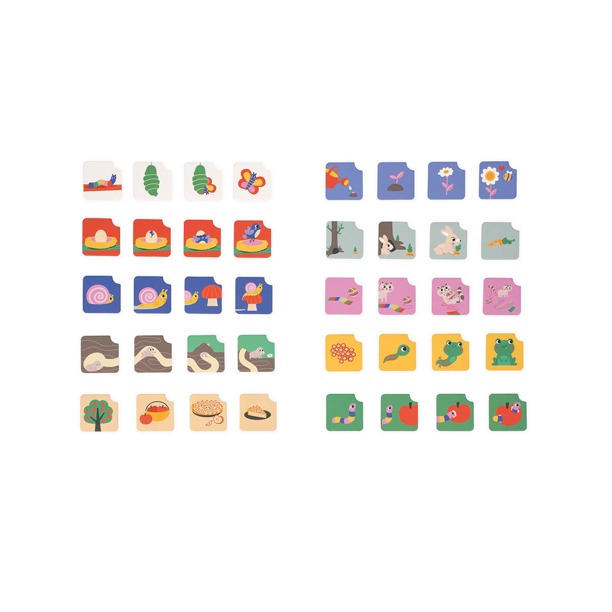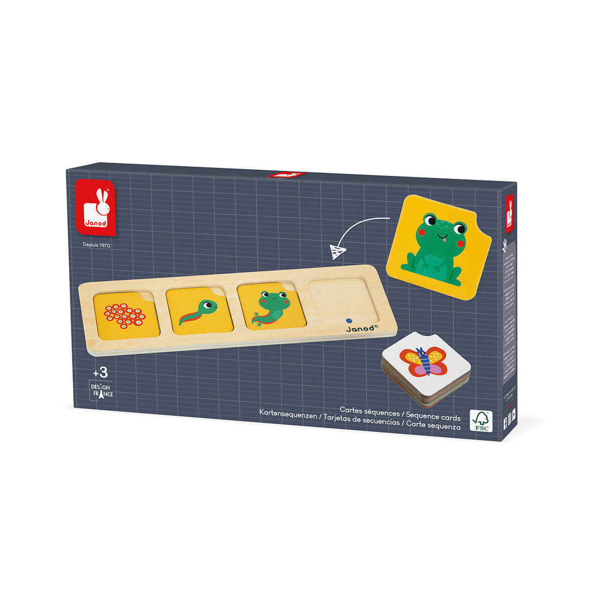 Garden Sequence Cards by Janod. Help to develop sequencing and number skills with this fun garden themed game. With ten different scenarios to be constructed, this educational toy helps children to understand the concept of time and improves their vocabulary.