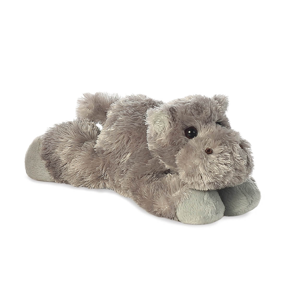Howie Hippo Mini Flopsie by Aurora. Aurora’s Flopsies feature miniature stylings of your favorite animal companions in a resting position for added cuteness and ease when playing, cuddling, and more! This Hippo is a fuzzy grey all throughout with smooth grey feet. Bring home this adorable hippo plush for a great, realistic addition to your collection. Beans inside the body mean they can be posed in several ways taking on much of the shape of the real animal and creating a very engaging, endearing friend. Made from the finest quality of materials to ensure that they can withstand even the roughest of playtimes.