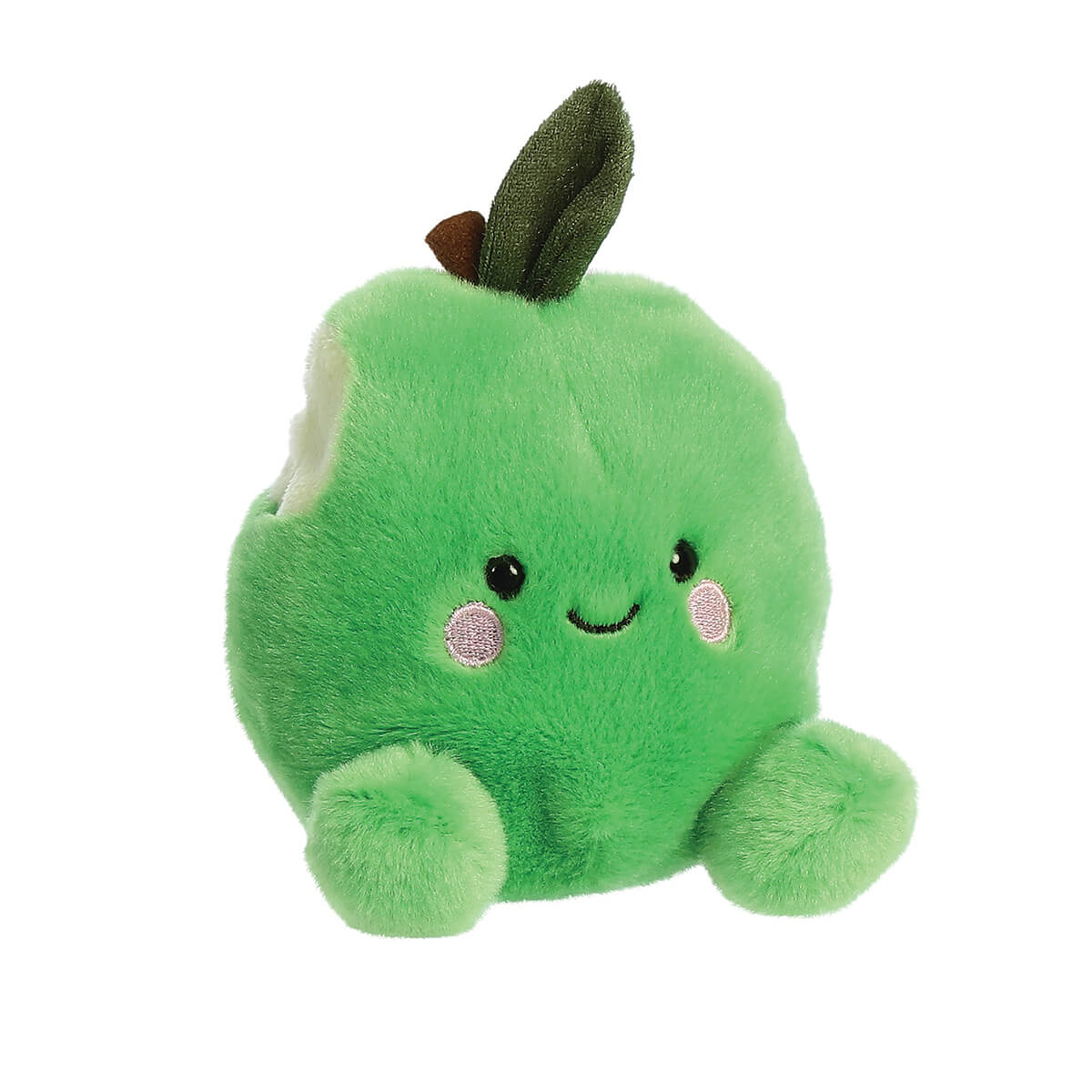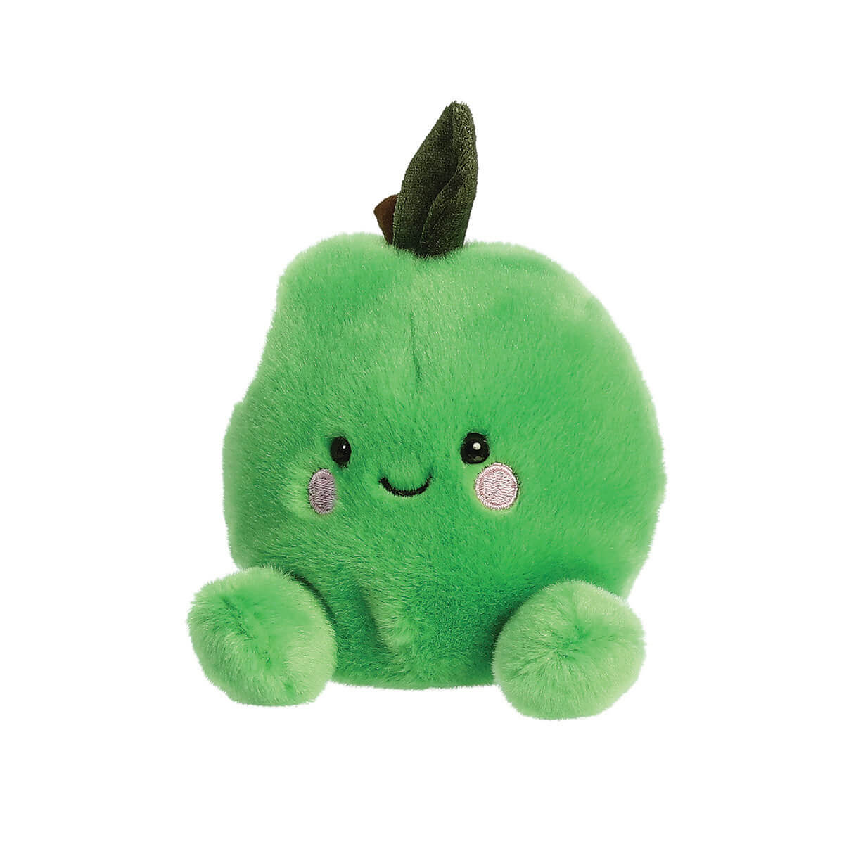 Jolly Green Apple Palm Pal by Aurora. This cute apple fits into the palm of your hand and is full of beans which makes it super soft and cuddly. Jolly Green Apple's body is a soft green plush material. Palm Pals make great gifts for any occasion. Suitable from birth.