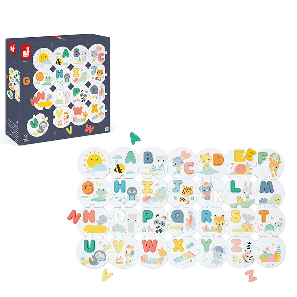 My First Alphabet Puzzle by Janod. It’s adventure time in letter land with this large puzzle that combines both cardboard pieces with slot-in wooden letters. This educational game is also ideal for developing memory and fine motor skills.