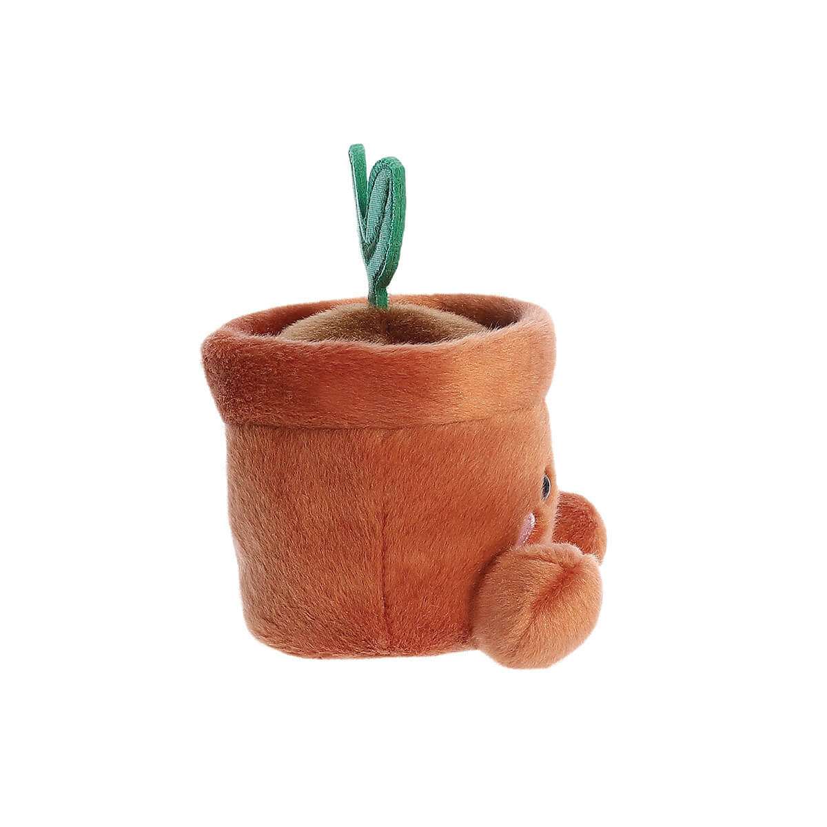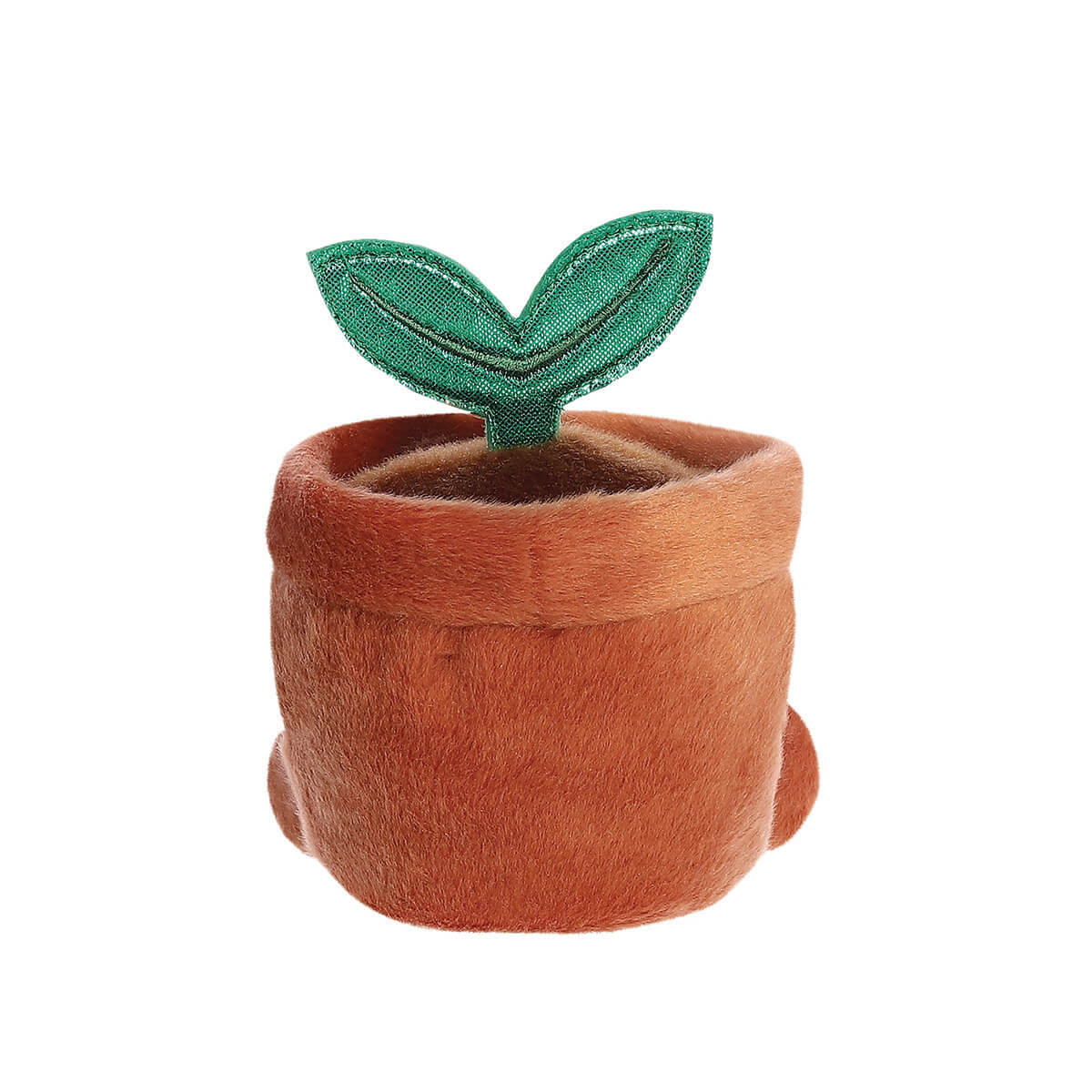 Terra Potted Plant Palm Pal by Aurora. This cute plant pot fits into the palm of your hand and is full of beans which makes it super soft and cuddly. Terra Potted Plant's body is a soft brown plush material and has a green shoot growing from their head. Palm Pals make great gifts for any occasion. Suitable from birth.