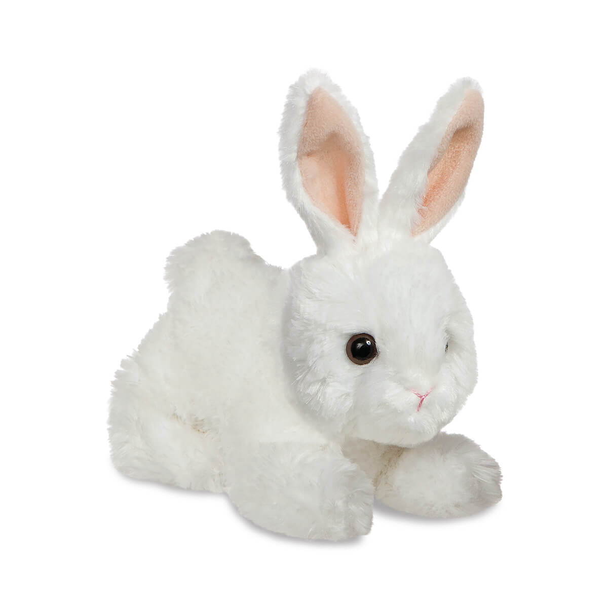Mini Flopsie Bitty Bunny by Aurora. Mini Flopsies make it easy for you to really get to grips with the eloquence and beauty of animals from across the world. Bitty is in a laying position but the beans inside the body mean that she can be posed. Beans inside the body mean they can be posed in several ways taking on much of the shape of the real animal and creating a very engaging, endearing friend. Made from the finest quality of materials to ensure that they can withstand even the roughest of playtimes.