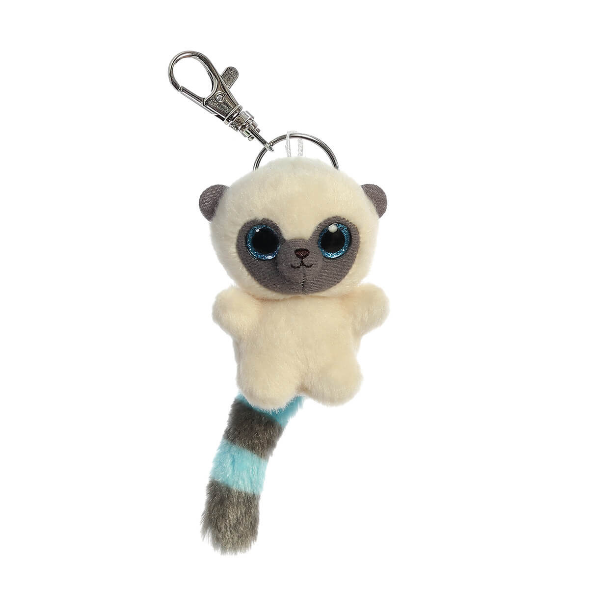 YooHoo Key Clip by Aurora. From award winning show YooHoo, the leader of the gang, YooHoo is bold, adventurous, kind, and always looks out for his friends. He is a cream and blue Senegal bush baby. His trademark coloured eyes portray his sweet, lovable facial expression. High quality materials make for a soft and fluffy touch.
