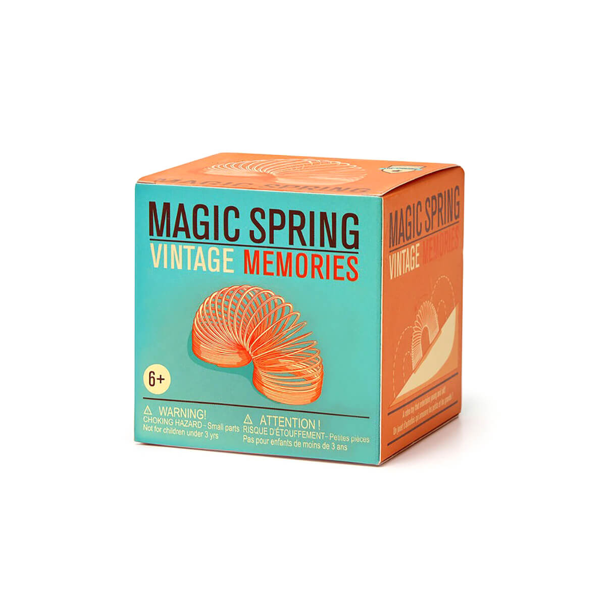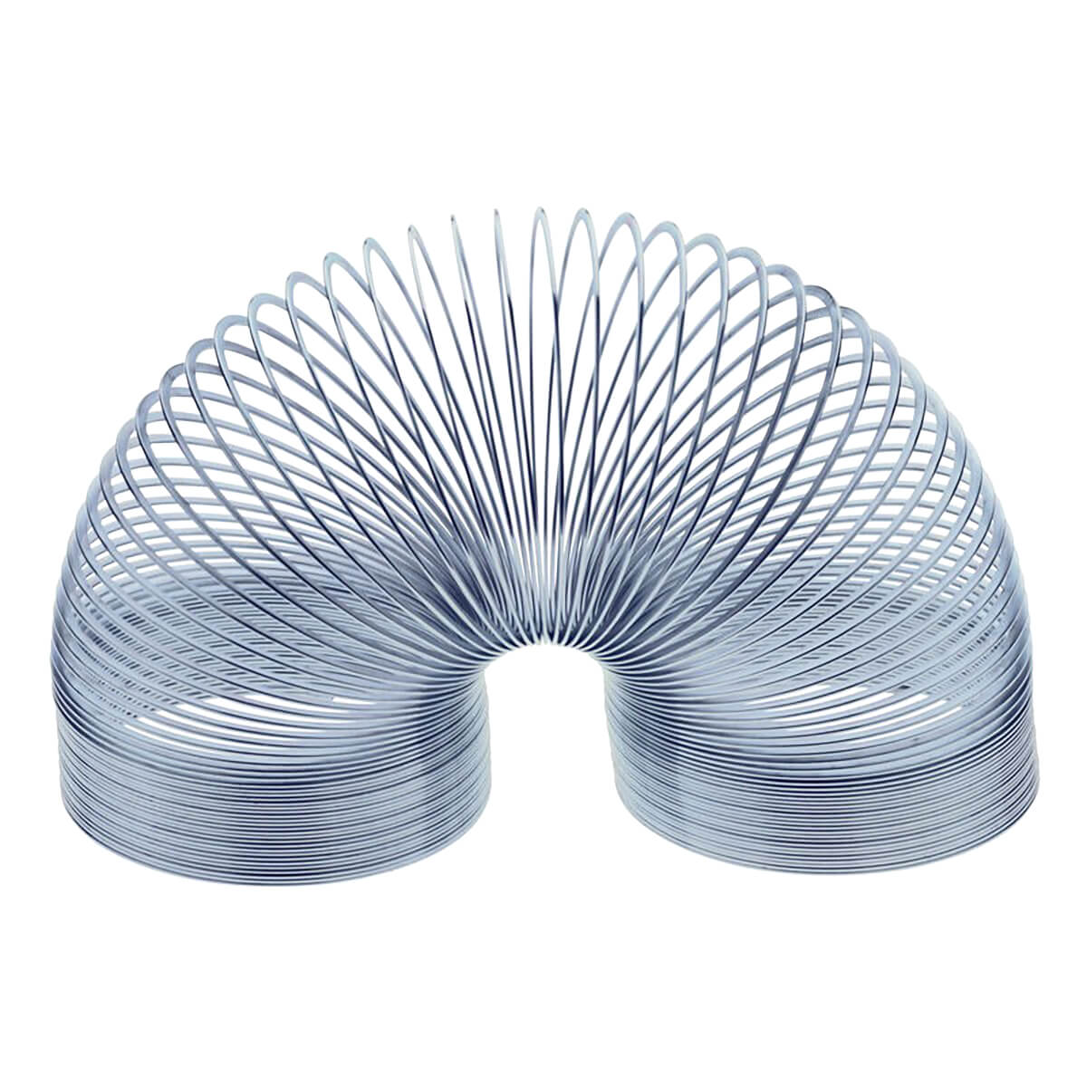 Magic spring toy by Legami. Classic retro metal slinky spring. Enjoy the enduring appeal of the slinky with this classic toy. Watch as the galvanised steel spiral travels down a flight of stairs, propelled by its own momentum, and discover all its tricks by trying it out on a range of surfaces and inclines.