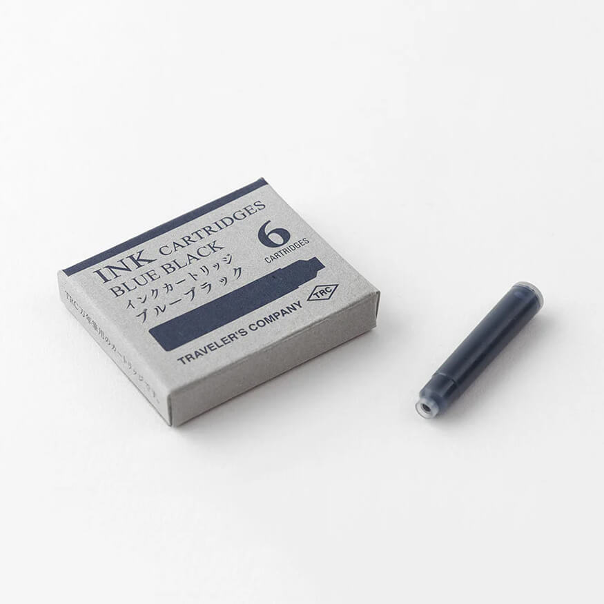 Cartridge in blue black by Traveler's Company. Ideal for Traveler's Company brass fountain pen and rollerball. Each pack contains 6 cartridges.