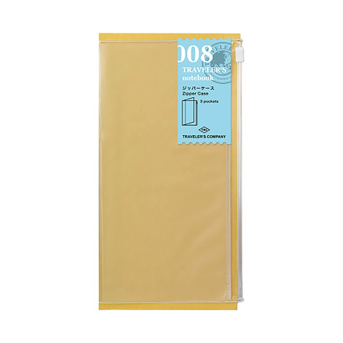 Traveler's Notebook Zipper Pocket 008 by Traveler's Company. A handy zip up plastic case to protect your notebook and store useful documents and notes. One end is a zipper case and the other a handy pocket.