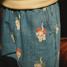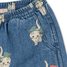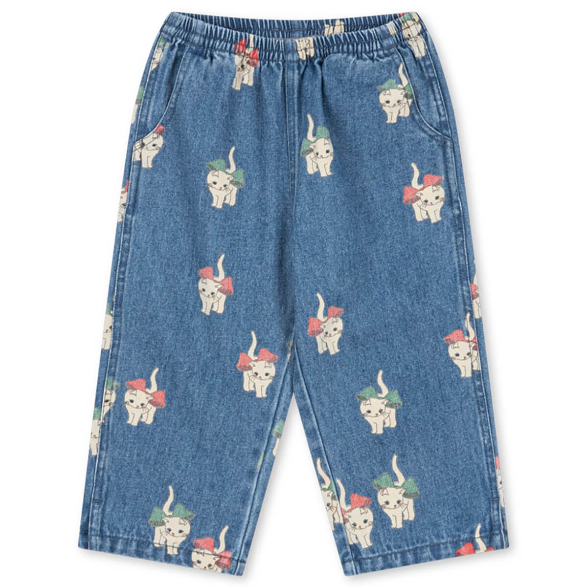 Magot Pants by Konges Slojd. Soft denim trousers with an elasticated waist and all over kitty print.