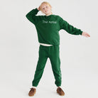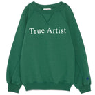 Sweatshirt nº01 in Verdant Green by True Artist. Sweatshirt nº01 in Verdant Green is made of 98% organic cotton and 2% elastane fleece and has the TA logo printed on the front. It is designed with ranglan sleeves, ribbed at cuffs and bottom, and has our bird logo embroidered on the sleeve. It has a loose fit.