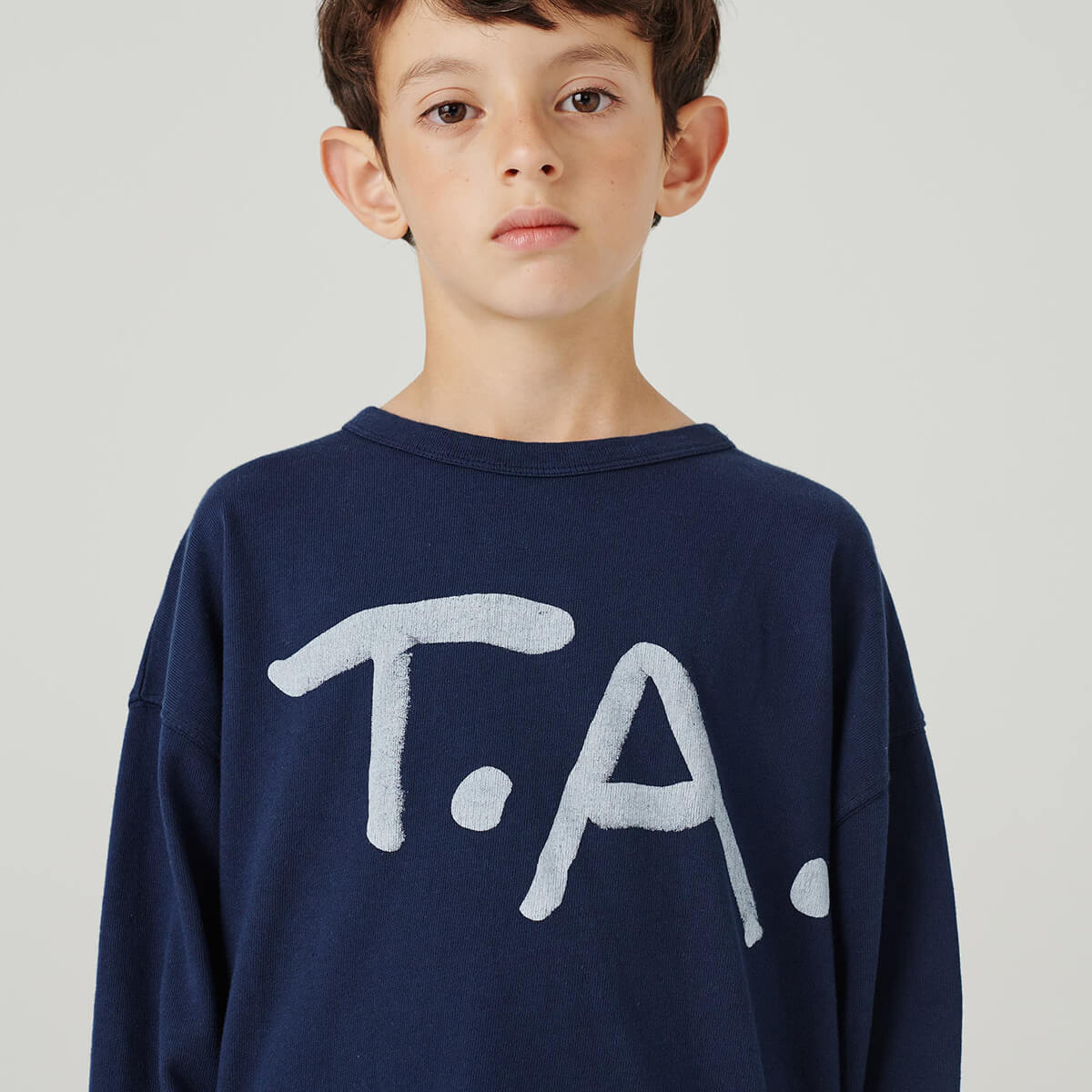 T-shirt by True Artist. A heavy knit long sleeve top featuring the T.A logo on the front and True Artist embroidery on the sleeve .