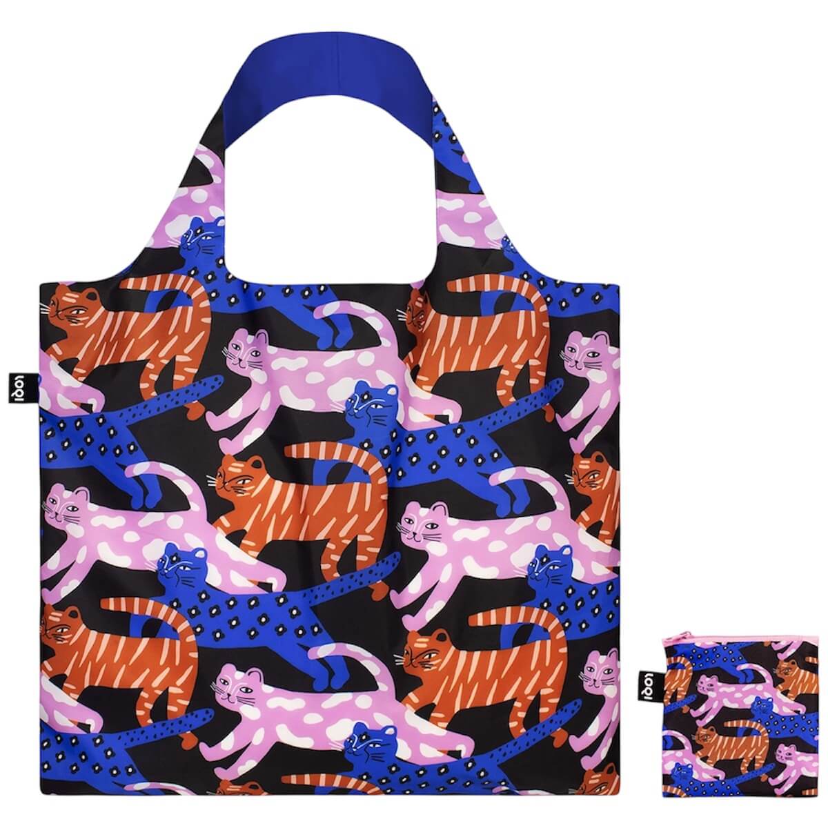 Glitter Power Cats Recycled Shopping Bag by Loqi. Vibrant feline designs meet sustainability in this playful, eco-friendly bag—perfect for cat lovers with a bold sense of fun. Whether stripes, leopard, or spots, we’ve got your cat style covered with this recycled bag!