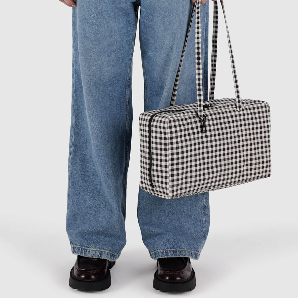 Medium Nylon Bowler Bag in Black and White Gingham by Baggu