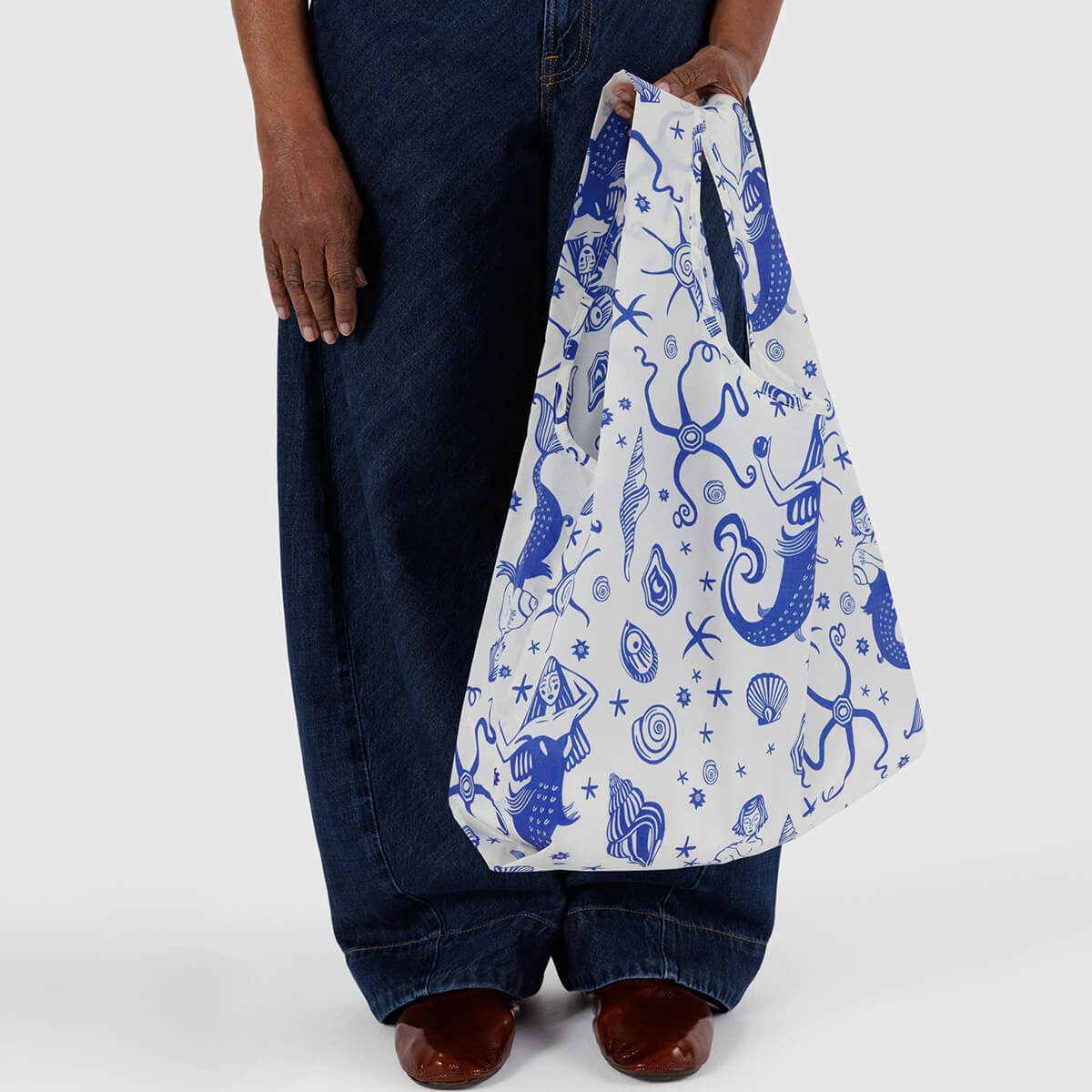 Standard bag by Baggu. Baggu's best selling reusable bag isn't just for the grocery store, it goes everywhere and hauls almost anything. Carries 2-3 plastic grocery bags worth of stuff comfortably in hand or over your shoulder.