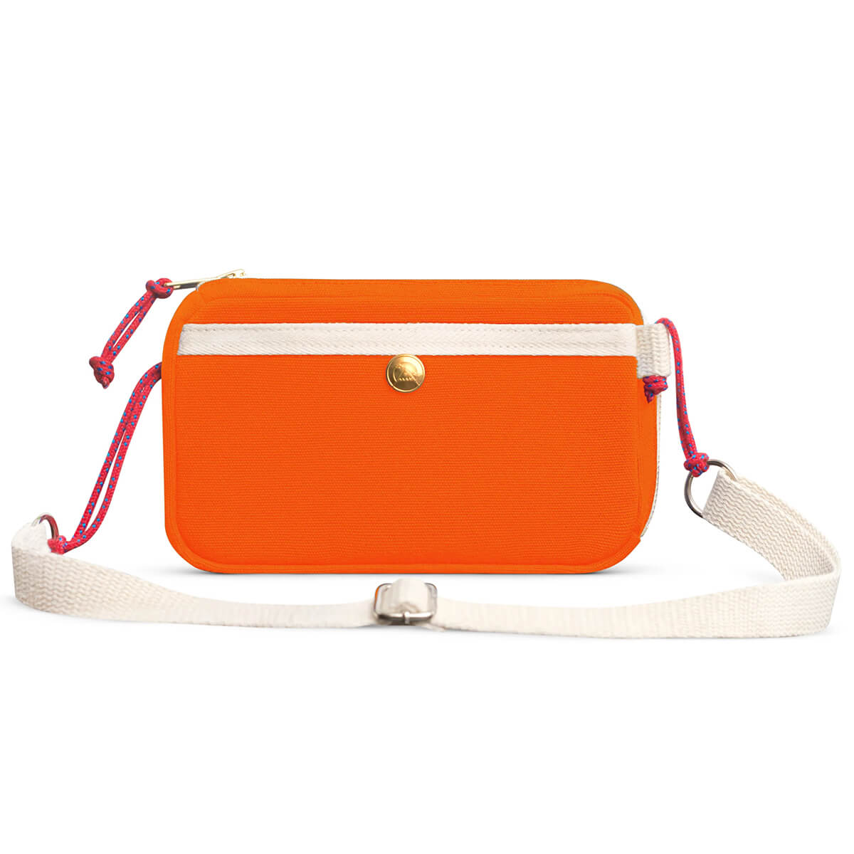 Travel Case bag by YKRA. A compact and practical small bag to keep your essentials organised and secure while you're on the move. Designed for travellers without pockets, who wish to hold their valuables on themselves, the travel case is ideal for holding your essential travel items such as your passport, wallet, keys, and more. It also features a back pocket with a press stud closure, providing a safe and secure place for your phone or sunglasses. The vintage-style metal YKK zipper opens to the side for easy access, and the adjustable cotton canvas strap allows you to wear it as you wish. Whether you're going on a weekend getaway or exploring a new city, it will be a great companion for all your adventures.