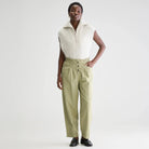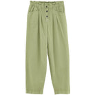 Lilow Paperbag Trousers by Bellerose. Relaxed paperbag waist trousers with tapered legs and horn button fastening. Made from cotton and linen poplin in sage green.