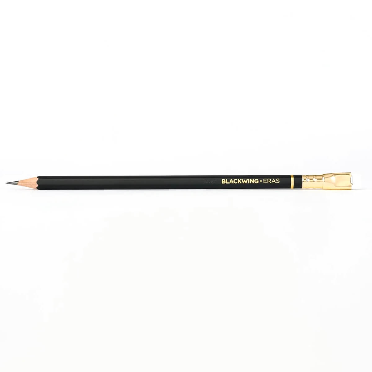 Blackwing Eras 2025 Edition Pencil (Single) by Blackwing. This Eras pencil sports a gold-banded design inspired by the pencil that kicked off the Blackwing revival in 2010. Each box includes 12 special edition pencils that feature a matte black barrel, gold stripe, gold ferrule, white eraser, and our soft graphite. This special edition pencil is the sixth entry in our Blackwing Eras series - honoring Blackwing's heritage with designs inspired by the Blackwing 602's unique history.