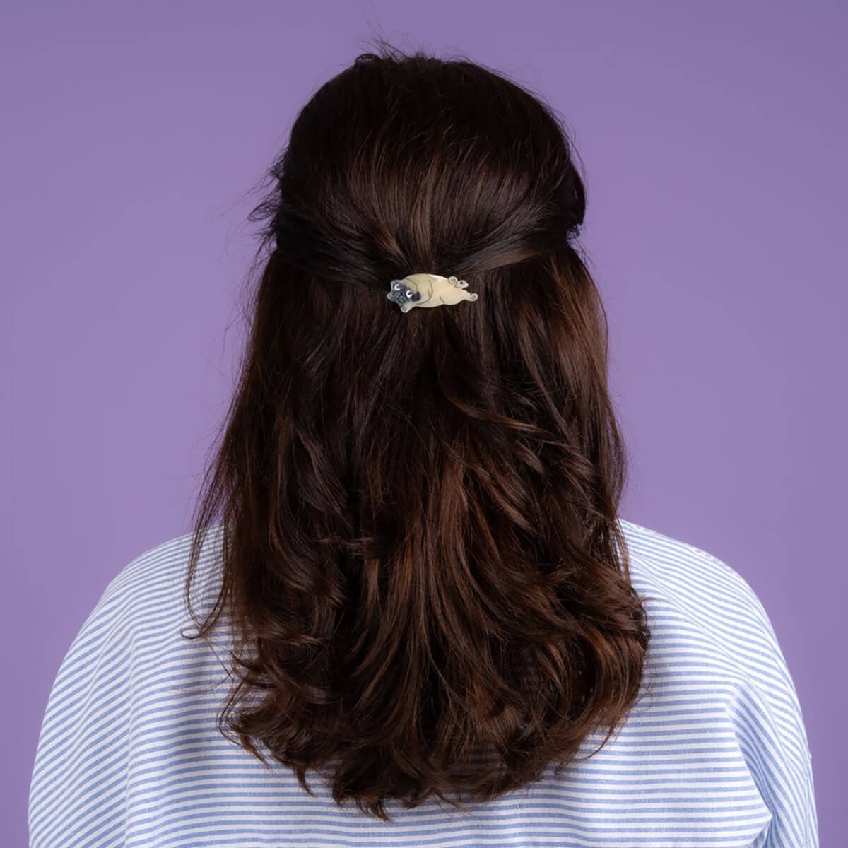 Pug Hair Clip by Coucou Suzette. How can you resist this adorable little pug hair clip!? This clip features a sweet pug laying on his tummy.