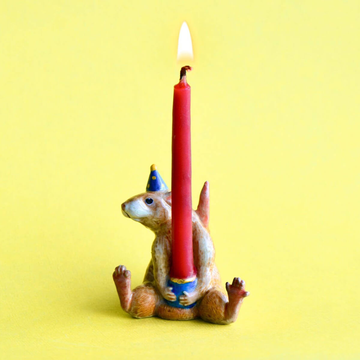 Rat ceramic cake topper by Camp Hollow. Start a celebration with this Chinese zodiac inspired collectible keepsake, featuring a gold lustre cup that holds a standard size birthday candle. Crafted in fine porcelain and meticulously hand-painted, this beautiful heirloom quality candle holder will celebrate every birthday and occasion for years to come.