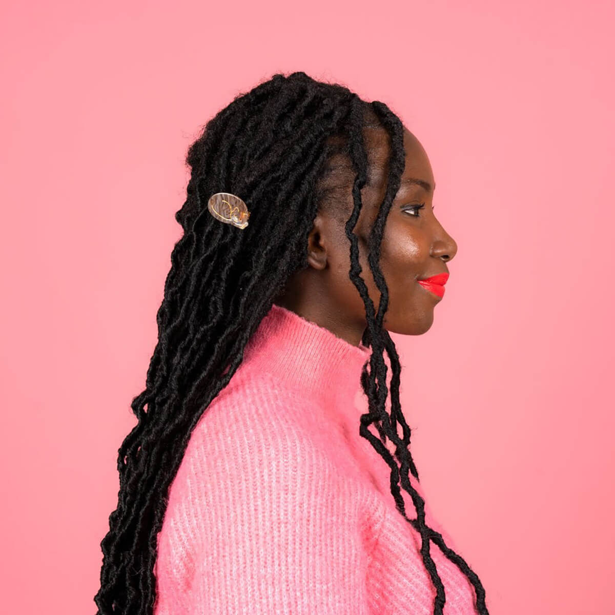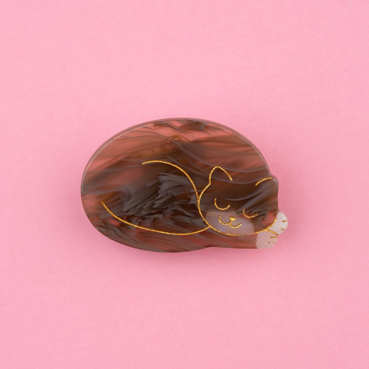 Sleepy Cat Hair Clip by Coucou Suzette. A cute barrette in the shape of a sleeping cat, you can almost hear it purring... We love its little white socks and its subtly golden soothed face. A great accessory to decorate a braid or bun for the whole family.