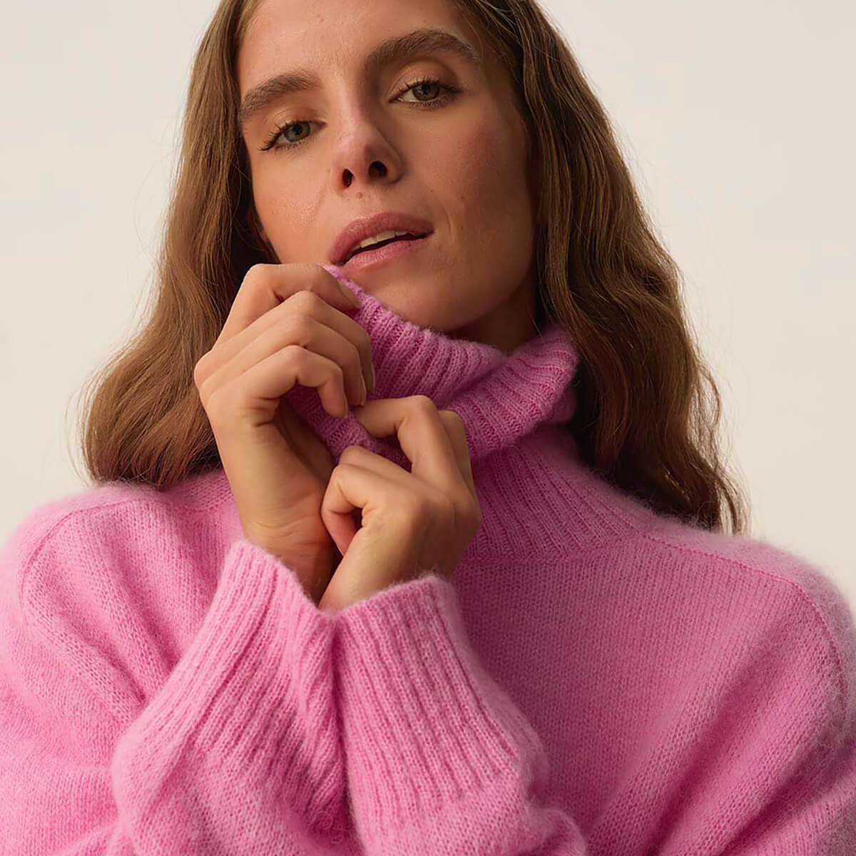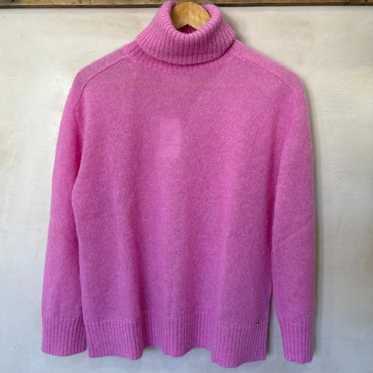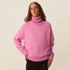 Caribou Sweater by Des Petits Hauts. A winter classic with a reworked aesthetic, the Caribou sweater has a wider cut and slightly hammered sleeves for a contemporary look. In Super Kid Mohair and Baby Alpaca, this turtleneck cut to escape the cold can be worn with jeans or dress pants.