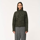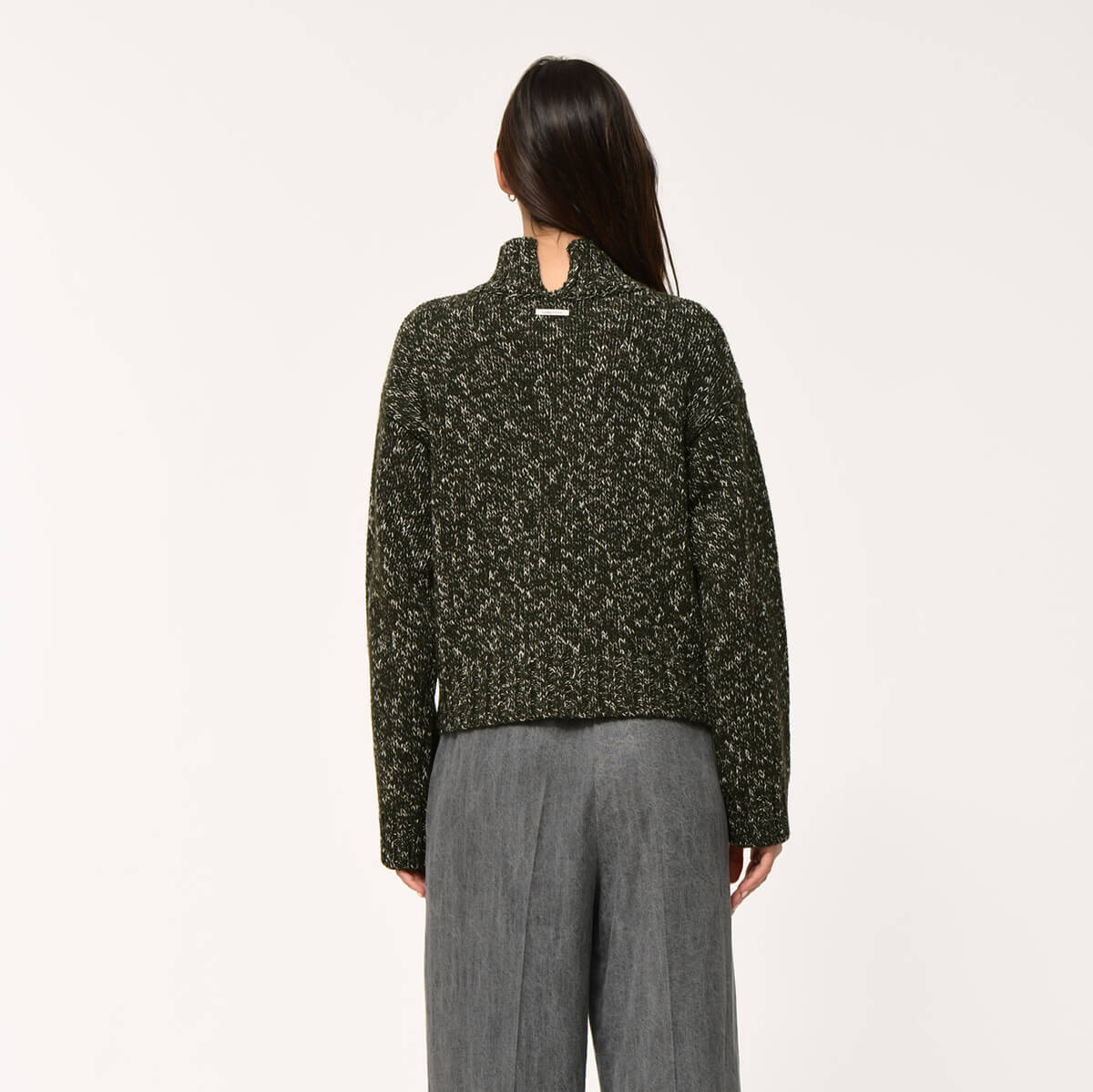 Corten Sweater by Humility. A boxy fit jumper in a chine effect milled knit. Featuring a high stand up collar and ribbed trims. Slit in the back neck.