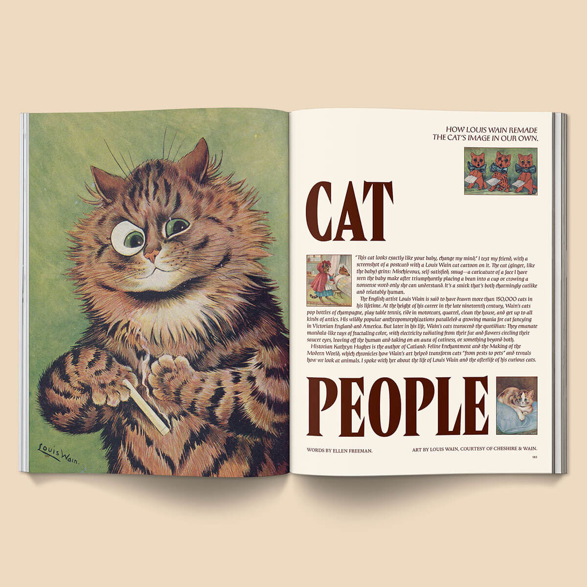 Inside: Ursula K. Le Guin sees the world through a kitten’s eyes, Claire L. Evans digs into why we want to talk to cats, Lauren Cochrane and Rebecca Thomas tail the working cats of London, and Kathryn Hughes explores Louis Wain’s cat obsession. Plus: Lost cat posters with happy endings, the world’s foremost collector of Siamese cat objets, the true story behind Why Cats Paint, online cat dialects, ancient Chinese cat contracts, the mysteries of toe beans, how cats get their names, cryptid beasts, Antarctic feline explorers, a trashy “tabbyloid,” and much more.