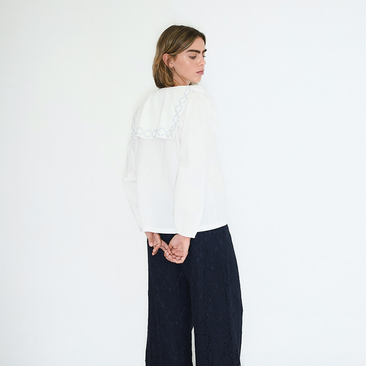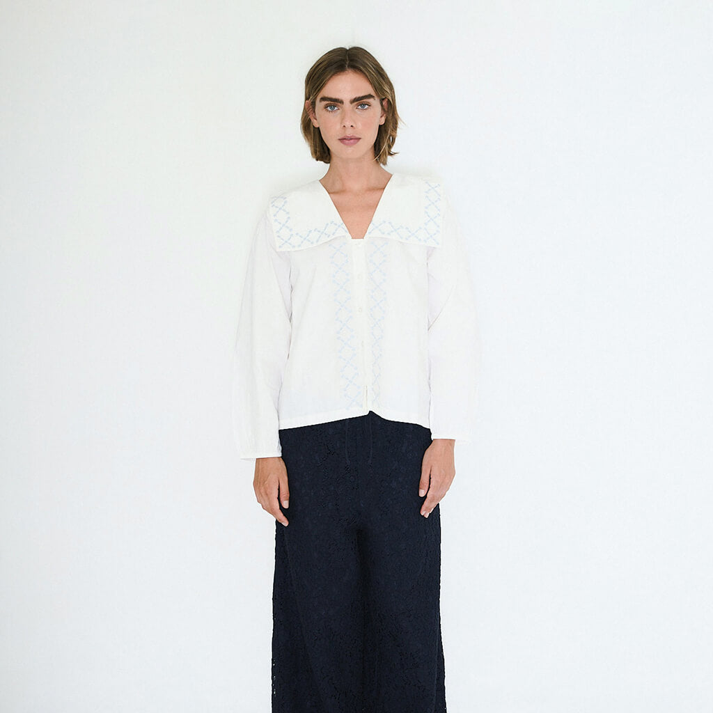 Cross Flower Embroidered Blouse in Off White by The Tiny Big Sister