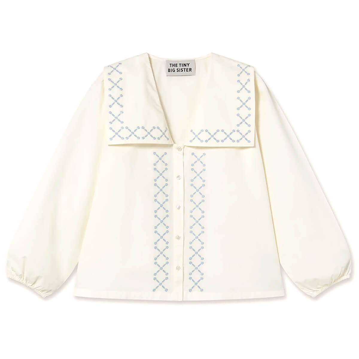 Cross Flower Embroidered Blouse in Off White by The Tiny Big Sister.