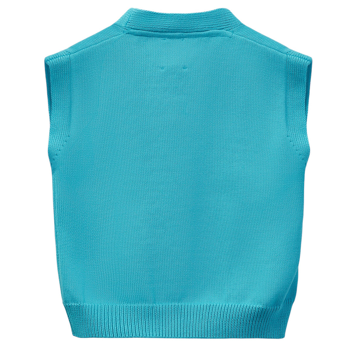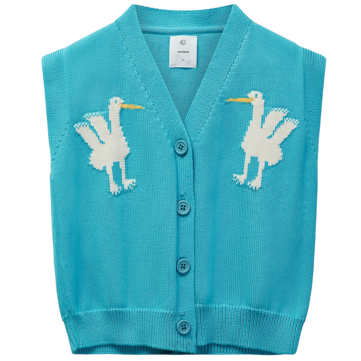 Hi Flyer Waistcoat by Wynken. This college-inspired knitted waistcoat combines classic style with cosy comfort. Made from 100% organic cotton, it’s soft, breathable, and gentle on the skin. Featuring a button-down front and deep armholes for freedom of movement, this waistcoat is perfect for layering over any outfit. The ribbed neck and hem offer a tailored fit, while the bold W.K. flag badge on the chest adds a distinctive touch of personality and school spirit. A stylish and versatile piece, this waistcoat is a must-have for little ones who love both comfort and fashion.