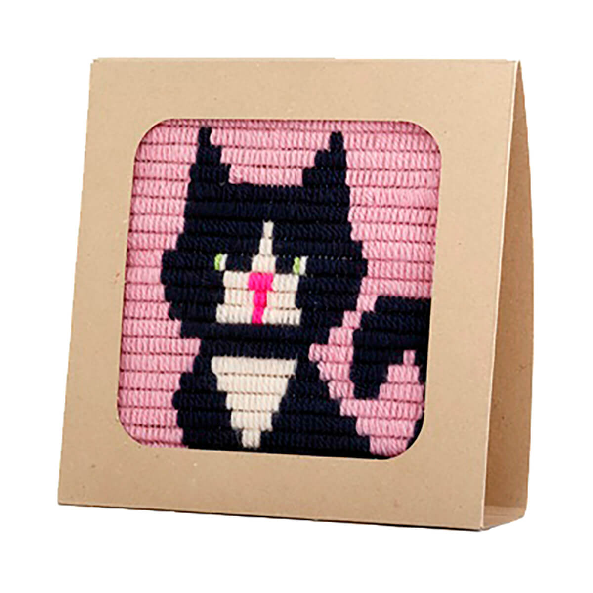 Black cat picture frame needlepoint kit by Sozo. These Sozo kits are an easy and fun introduction to needlepoint, available in a variety of designs for girls and boys. The design is printed on heavy, short stitch fabric net, removing the need for an embroidery hoop and making the kit easier for younger children. The eco-friendly packaging sleeve is made of recycled paper and is designed to be easily turned into a box frame perfect for displaying your creation.