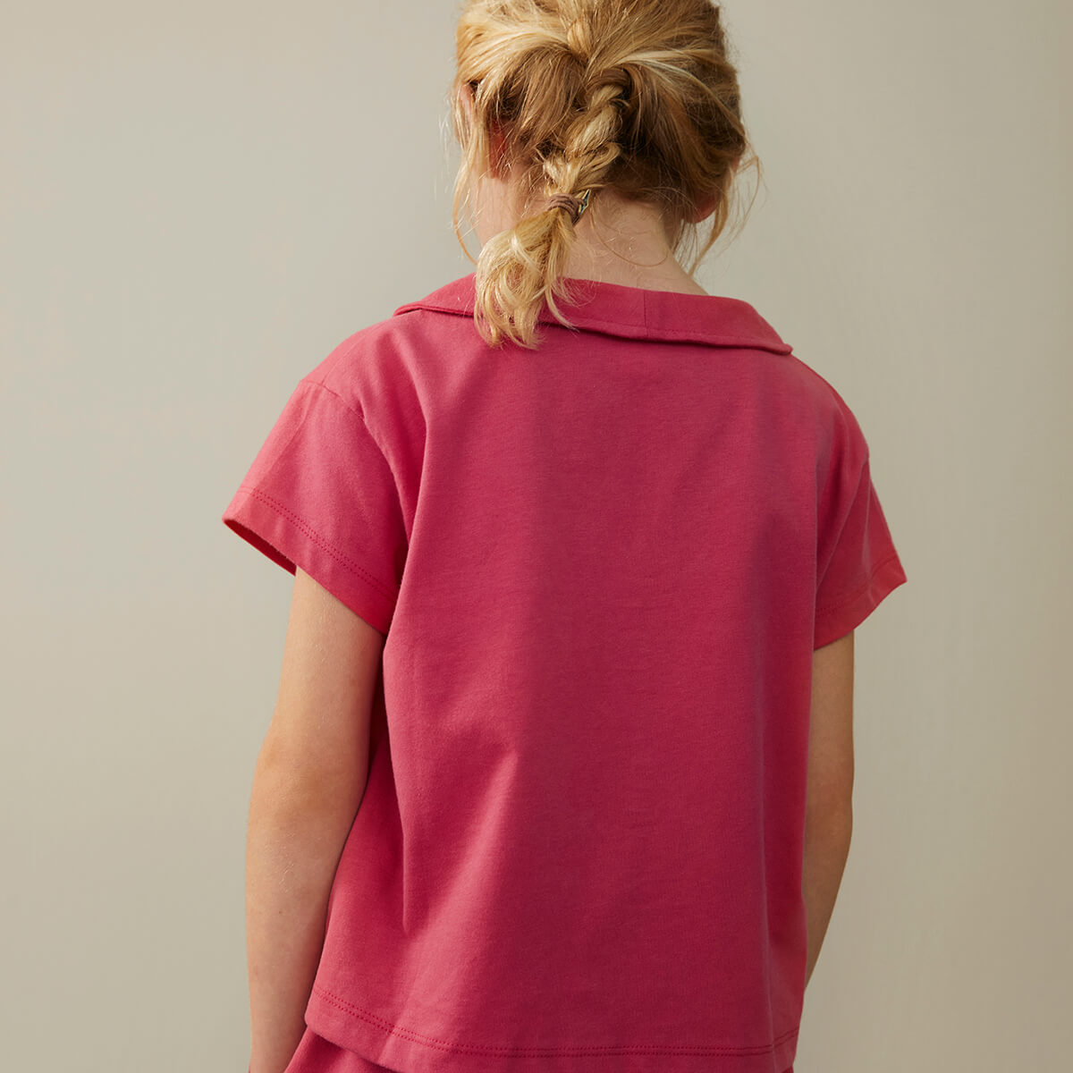 Boxy Collar Top by Gray Label. This short-sleeved raglan T-shirt has a slightly curved hem and is made from our soft organic cotton fabric. Our logo is stitched on the side of the right arm, just below the shoulder.