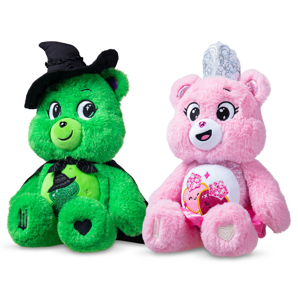 Care Bears x Wicked Love-a-Lot & Good luck Bear Boxed Set by Hasbro. Care Bears x Wicked 2-Pack Plush Set includes Love-a-Lot Bear as Glinda and Good Luck Bear as Elphaba, featured together in this 2-Pack Box Set – great for gift giving to any Wicked fan! Check out Love-a-Lot Bear as Glinda from the Wicked movie theatrical – featured in her iconic dress and crown and Good Luck Bear as Elphaba from the Wicked movie theatrical – featured in her iconic cape and hat.