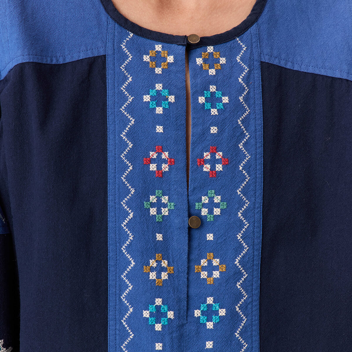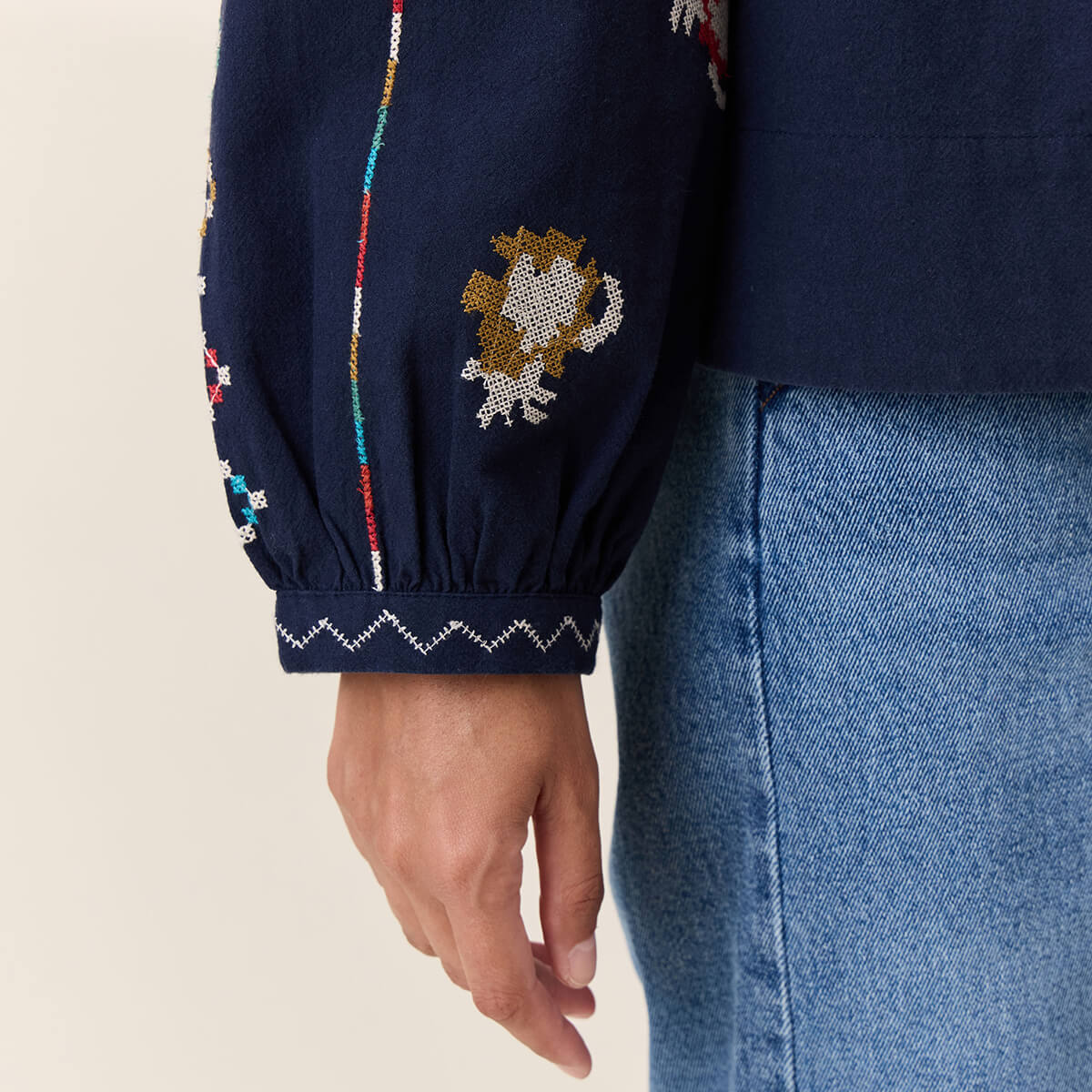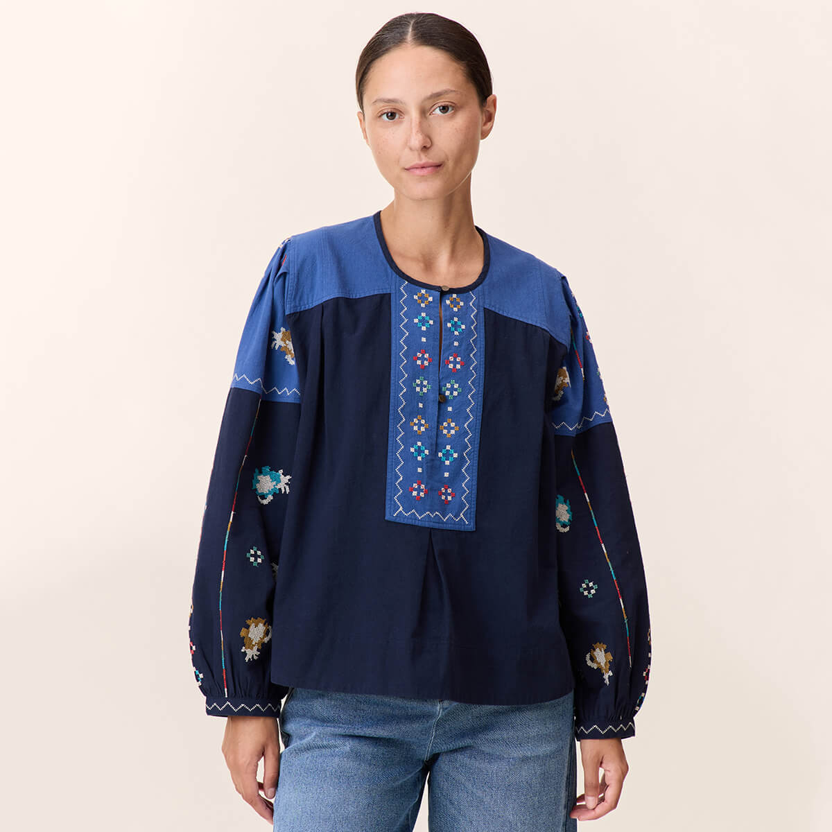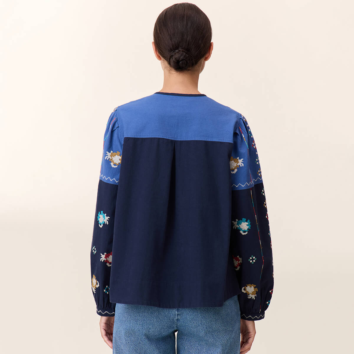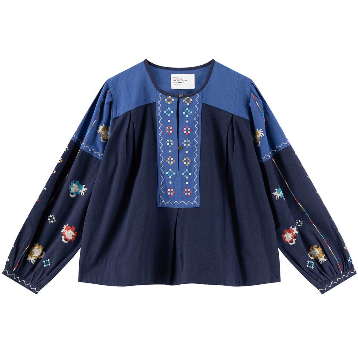 Chuki Shirt in Blue Embroidery by Leon & Harper
